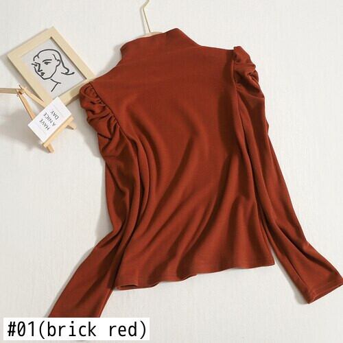Nomikuma ハーフカラーパフスリーブ底入れシャツ女性 2022 秋グラフィック Tシャツソリッドストレッチスリム Tシャツトップス オータム 秋物 ソリッドカラー kor71162237963