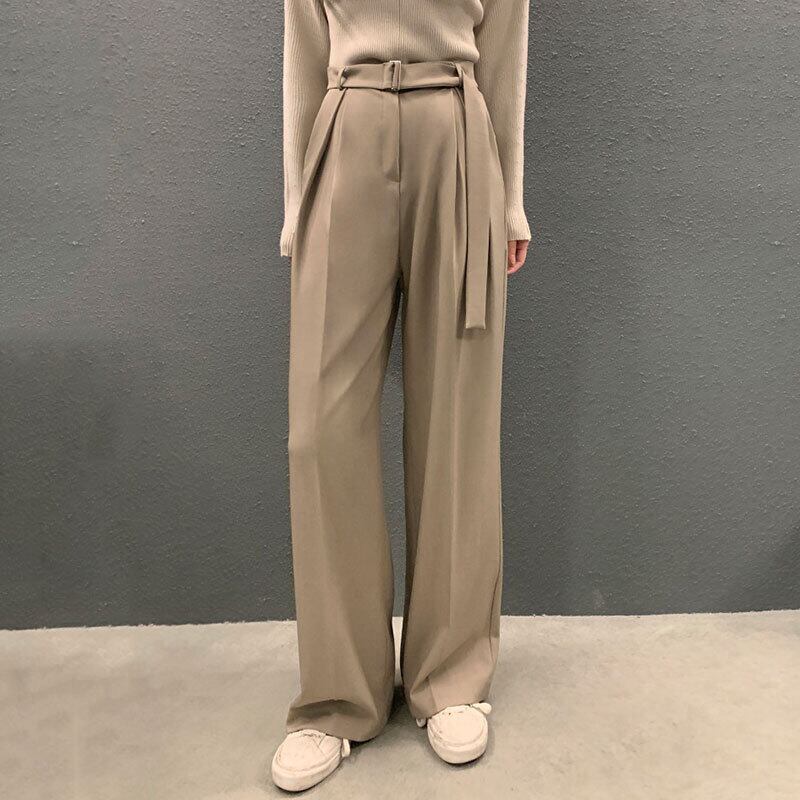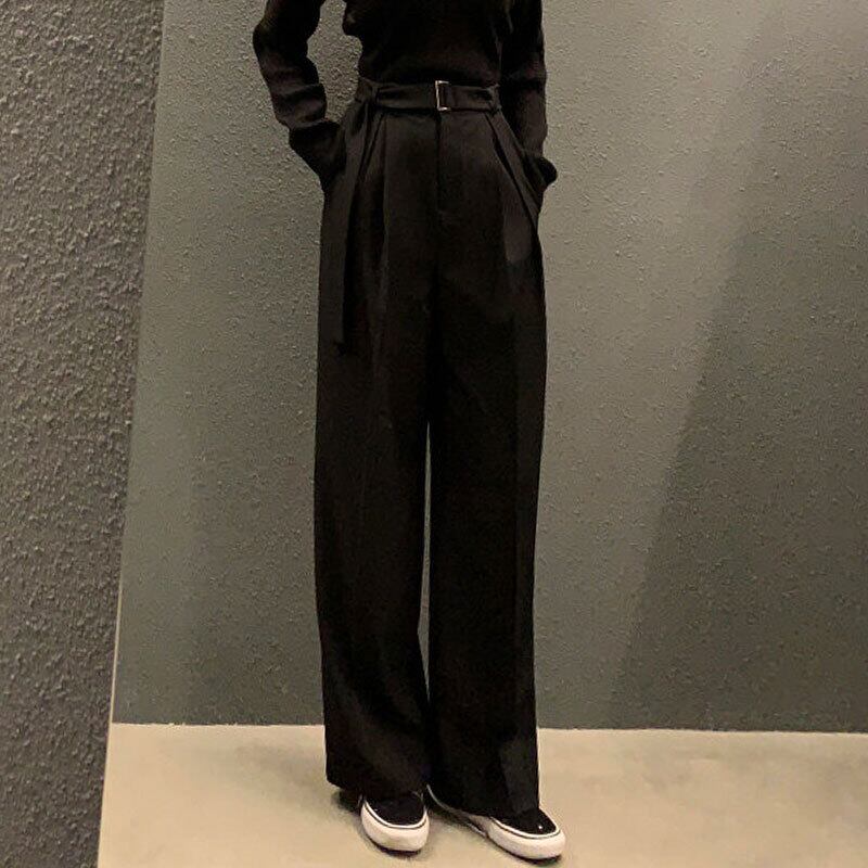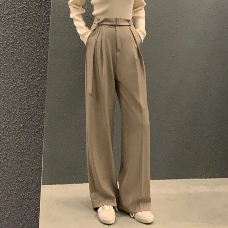 Nomikuma ベルトウエスト女性スーツパンツ秋冬長ズボン因果無地ワイドレッグパンツ ロング オータム 秋物 ウィンター 冬物 ハーネス ワイドパンツ ソリッドカラー kor71156625865