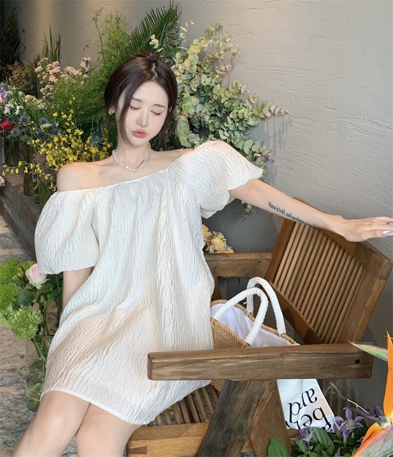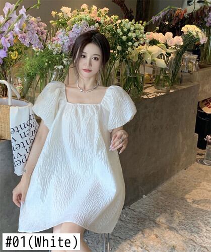 Nomikuma シックなパフスリーブドレス女性スクエアカラー 2022 夏甘いドレス因果固体 Vestidos デ 大人ガーリー スウィート キュート カジュアル サマー 夏物 ソリッドカラー スクウェア kor77727744426