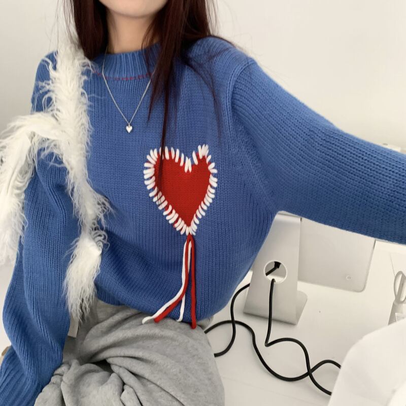 ノミクマ ラブハート リボンセーター カジュアル 長袖 Oネック プルオーバー ニット プルオーバー 2022秋冬 プルオーバー ロング オータム 秋物 ウィンター 冬物 kor20394639117