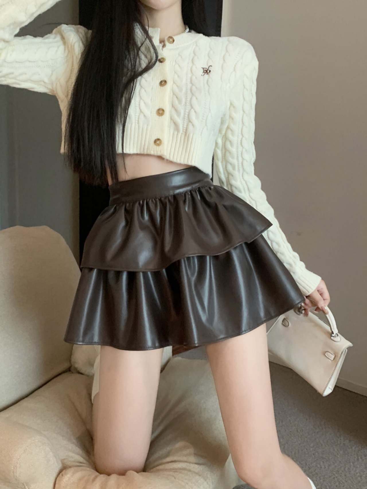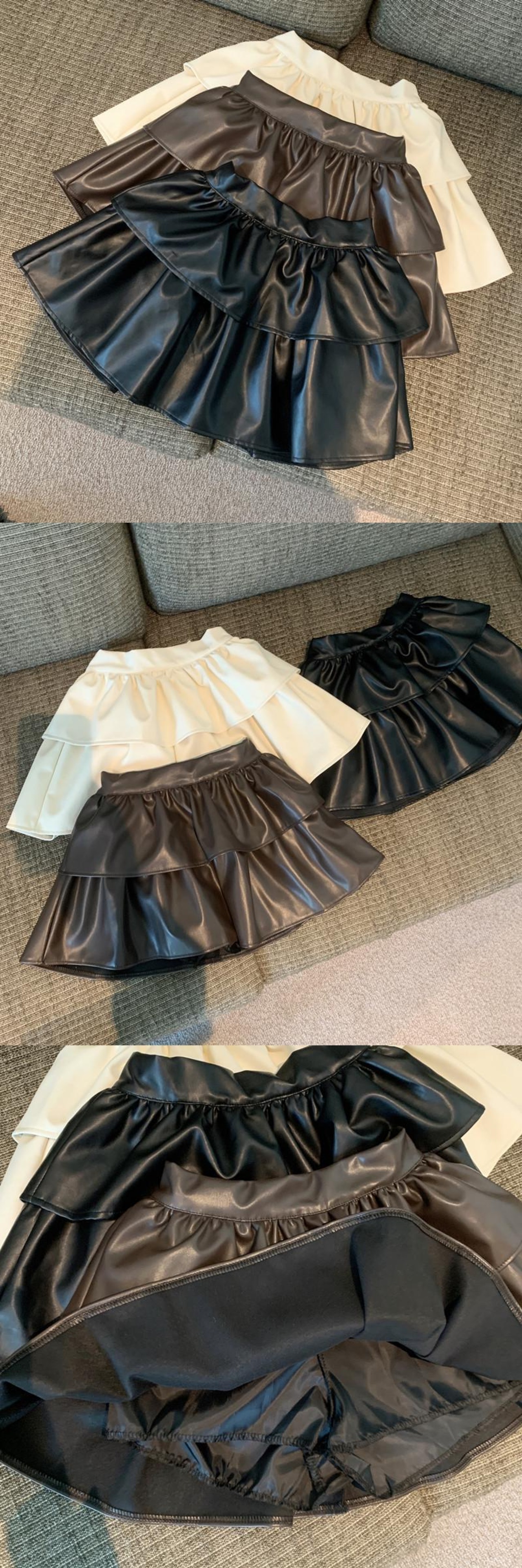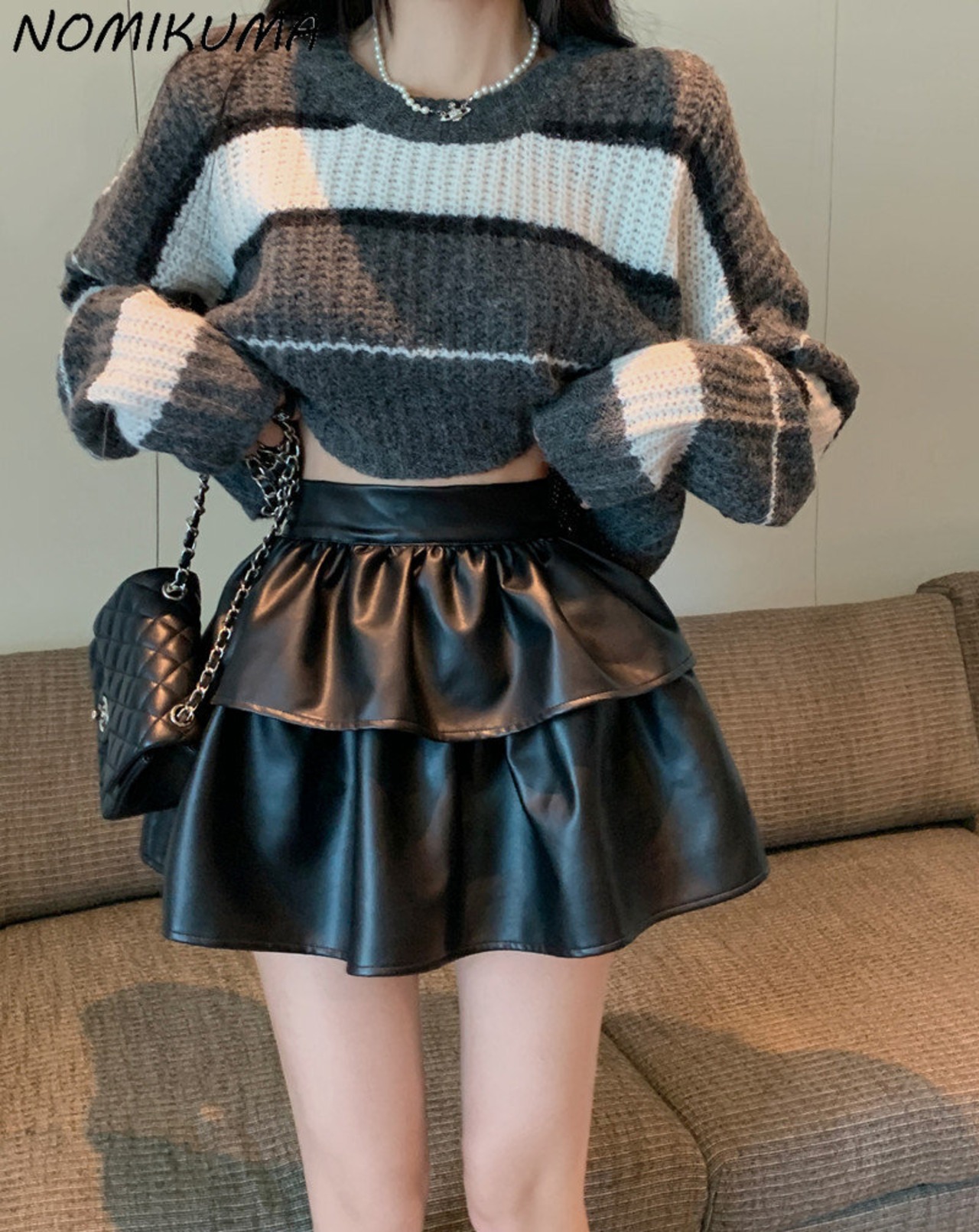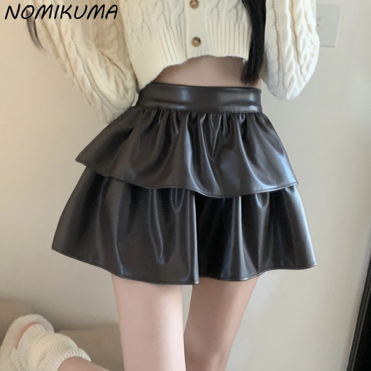 Nomikuma 秋冬 PU レザースカートシックなフリル A ラインミニスカート女性 2022 ボトムス段 Faldas デ オータム 秋物 ウィンター 冬物 Aライン kor70733666805