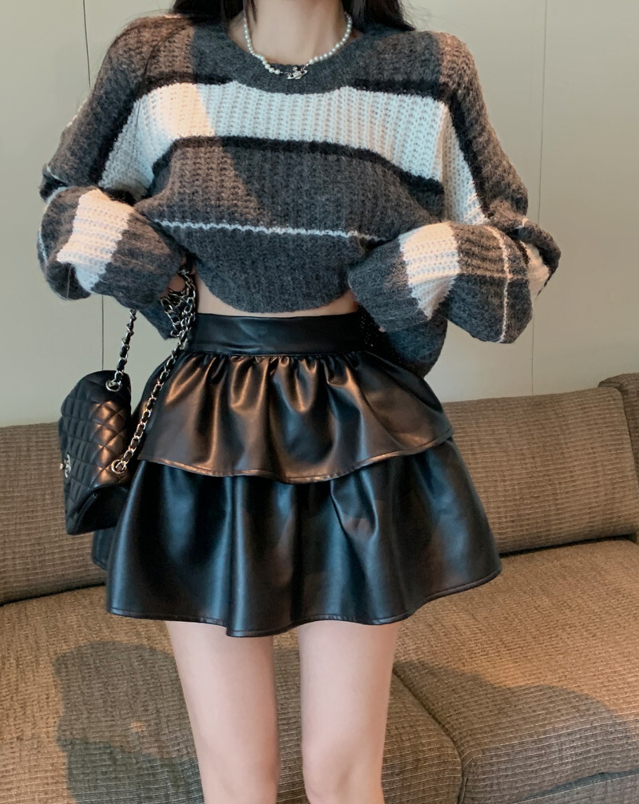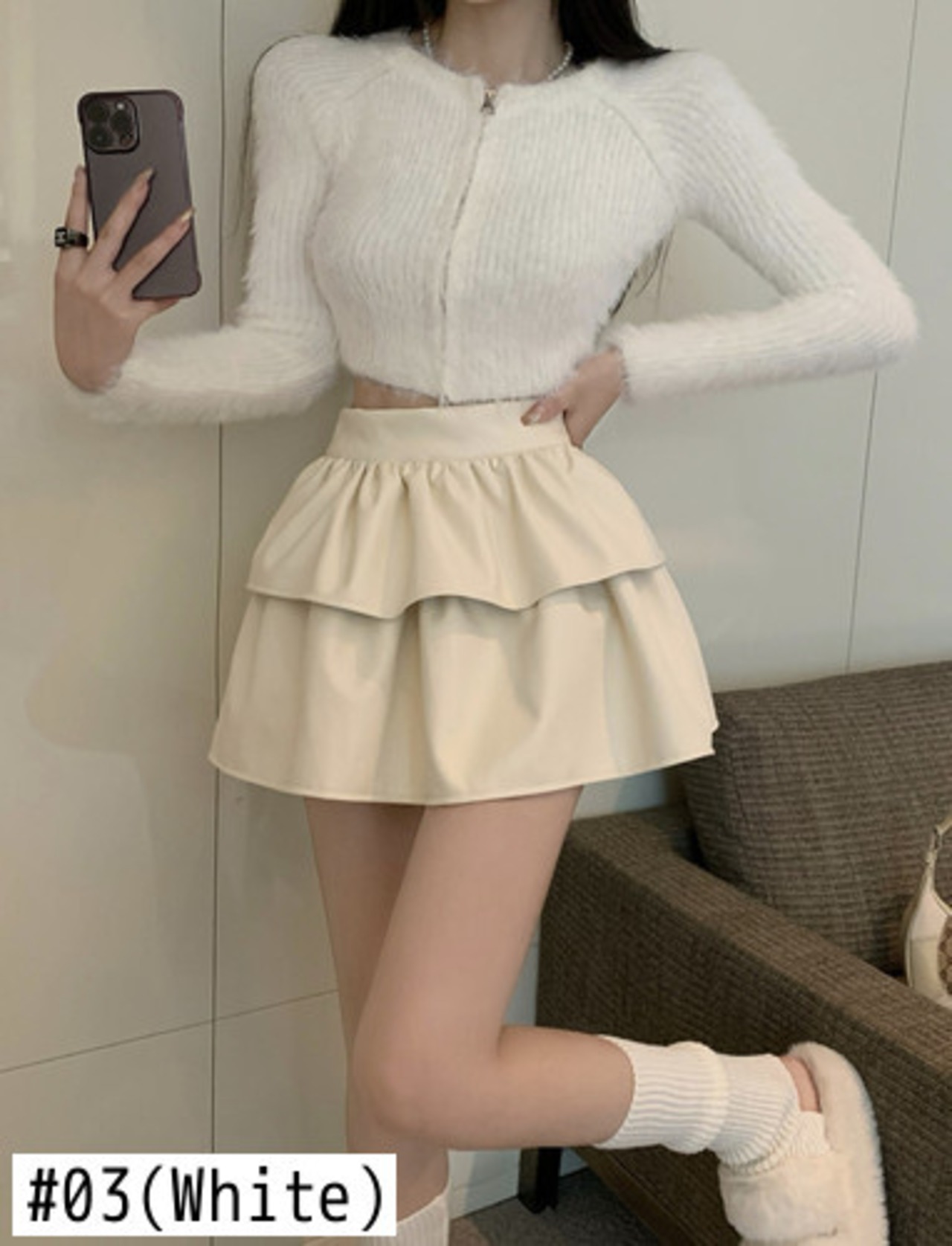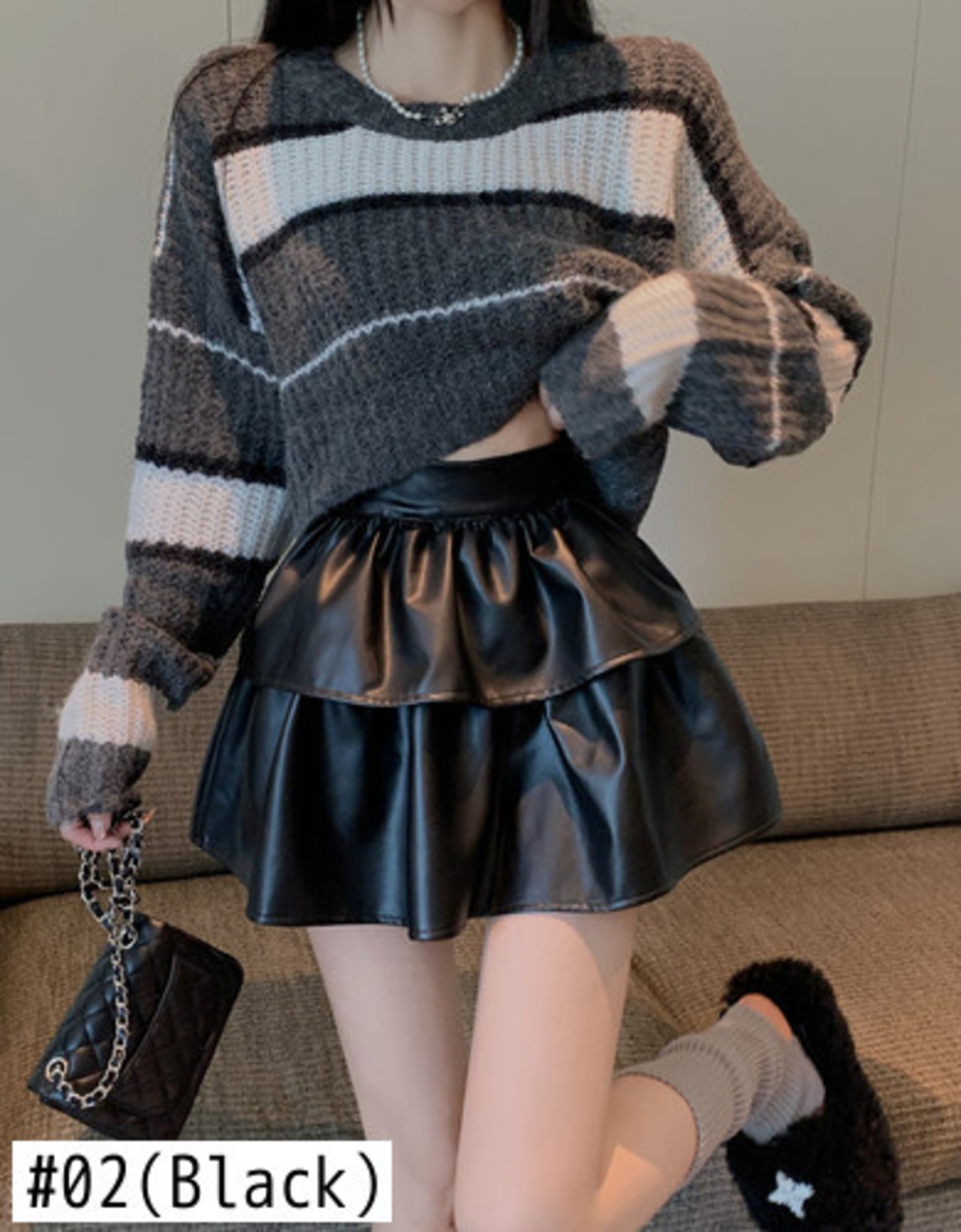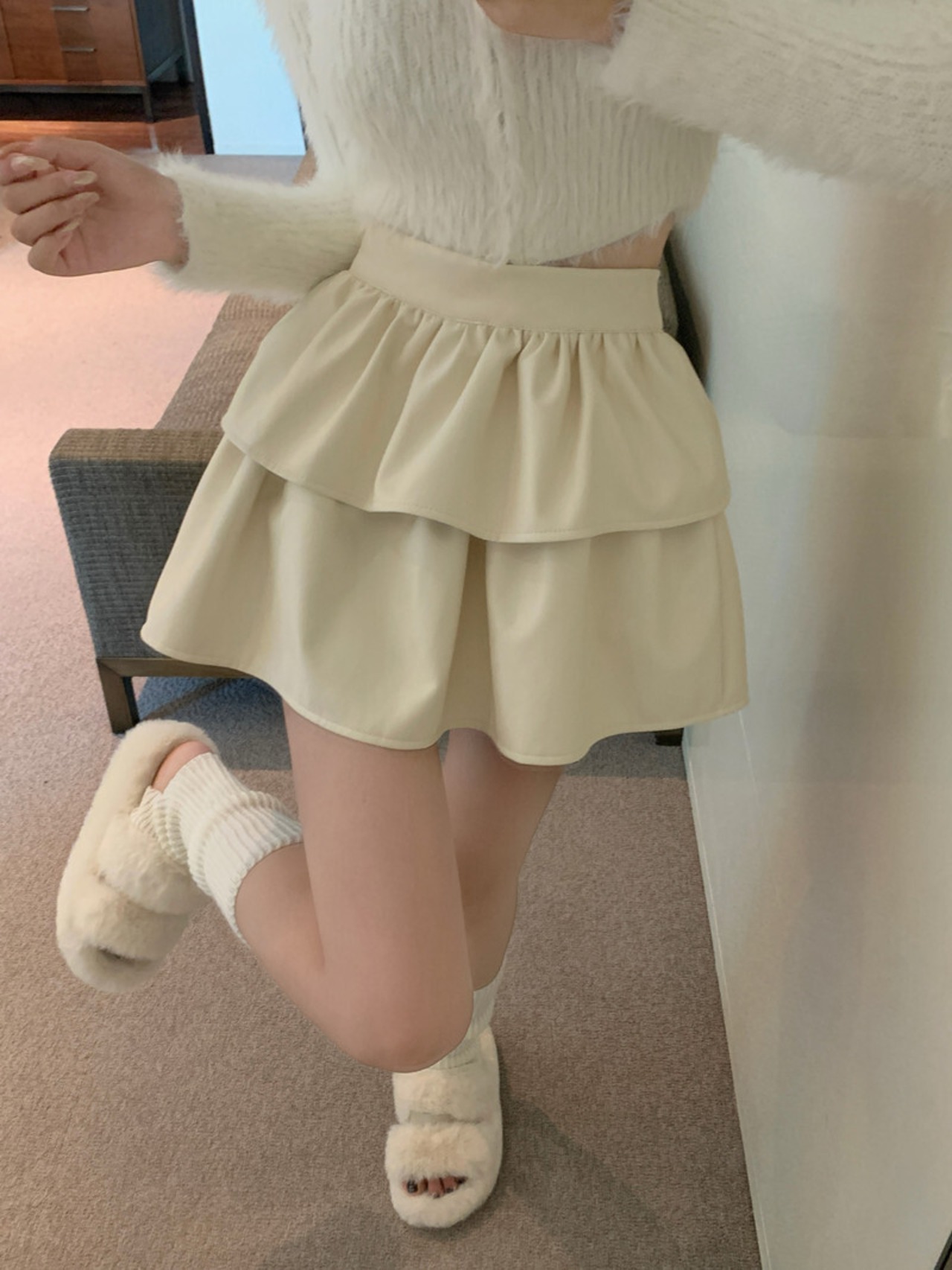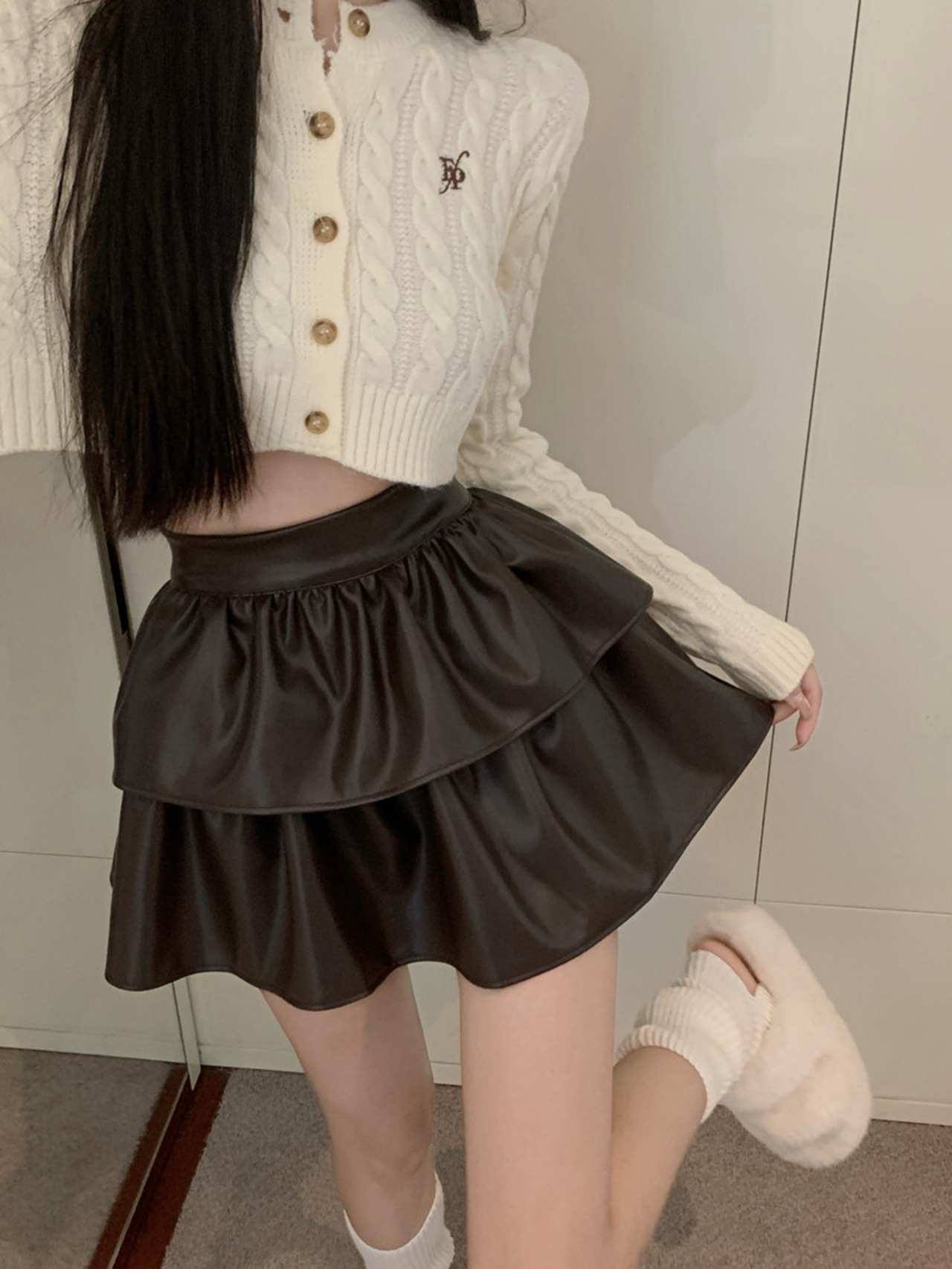 Nomikuma 秋冬 PU レザースカートシックなフリル A ラインミニスカート女性 2022 ボトムス段 Faldas デ オータム 秋物 ウィンター 冬物 Aライン kor70733666805