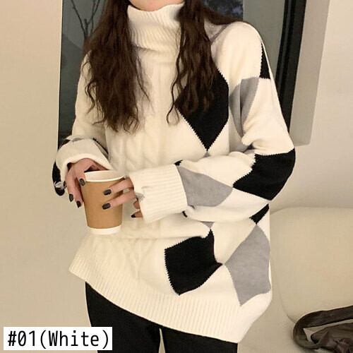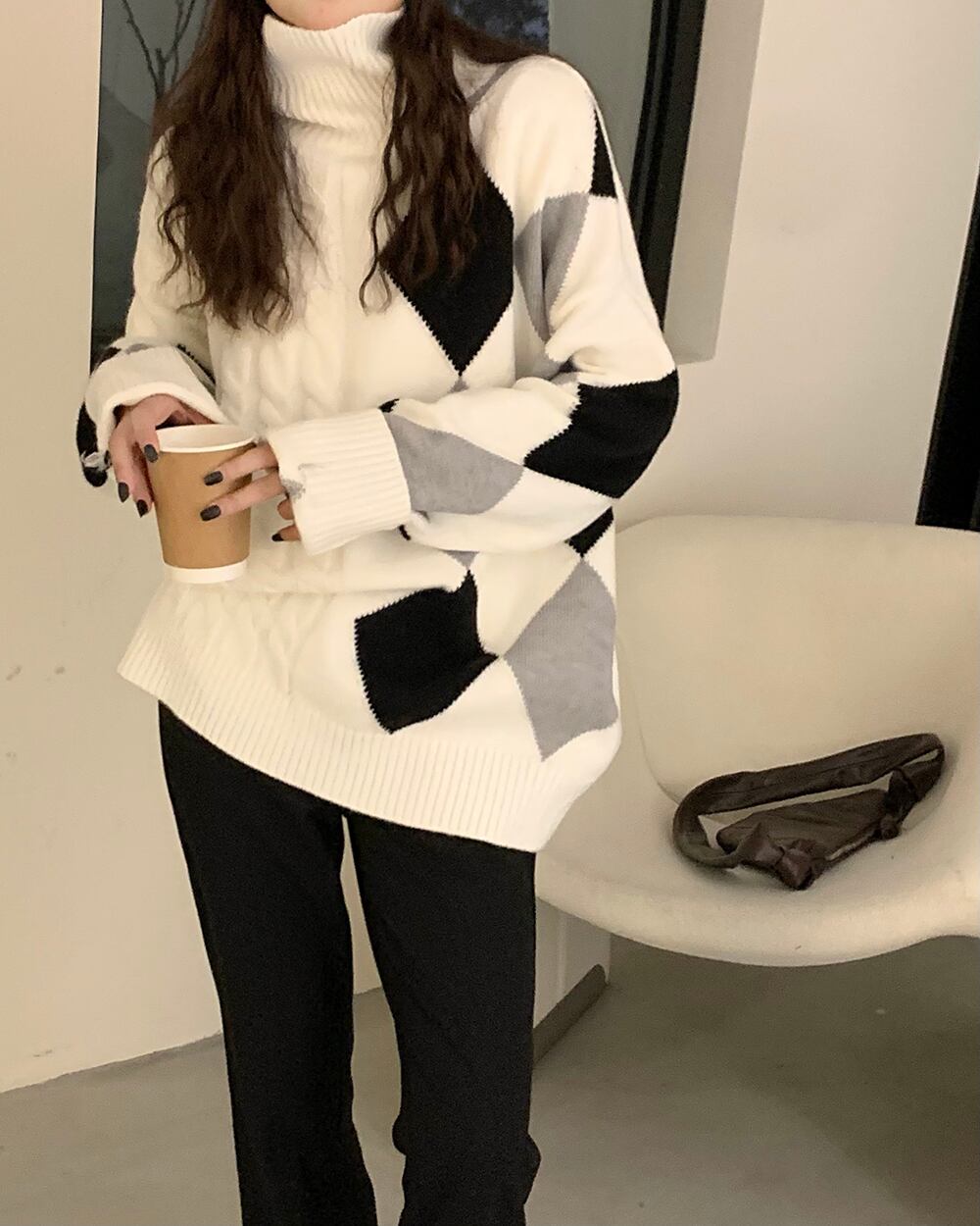 Nomikuma プルヒットカラーアーガイルニットプルオーバー 2022 秋冬タートルネック長袖因果セータートップス女性 ロング オータム 秋物 ウィンター 冬物 kor77447790369