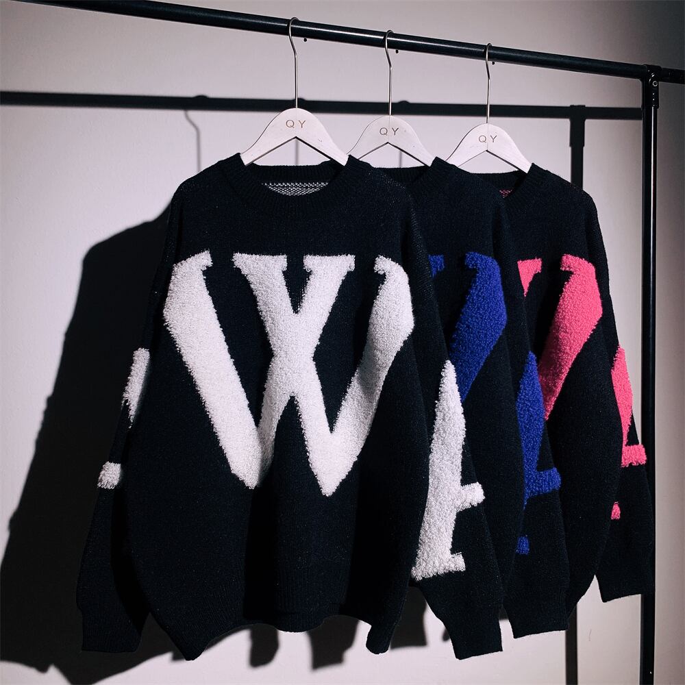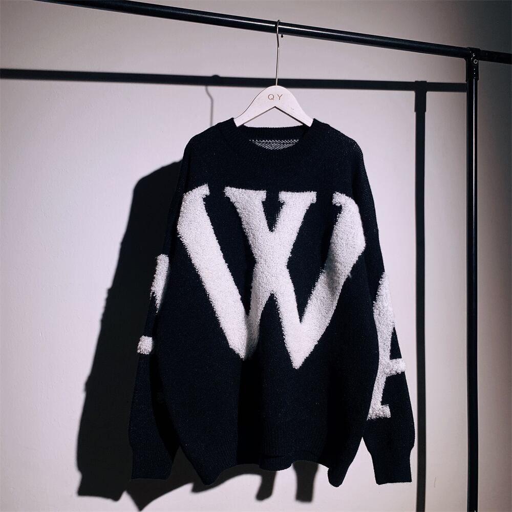 Nomikuma 因果手紙植毛ニットセーター女性の冬暖かい 2022 長袖 O ネックプルオーバーニットトップス ロング ウィンター 冬物 Oネック kor81435428653