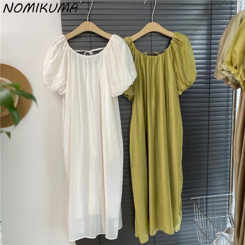Nomikuma 因果バックレースアップ女性ドレスシックなパフスリーブサマードレス 2022 ソリッド Vestidos デ 夏物 ソリッドカラー kor56006527421