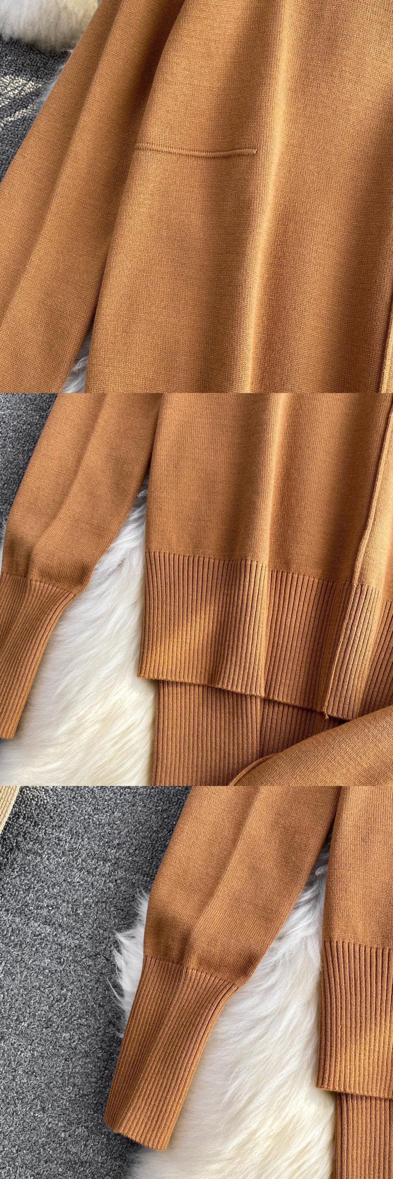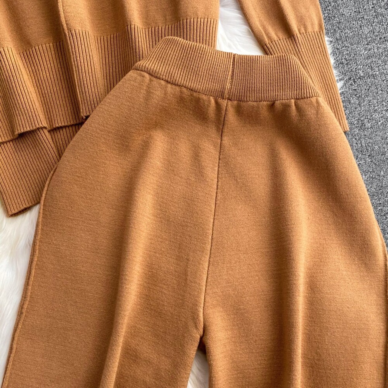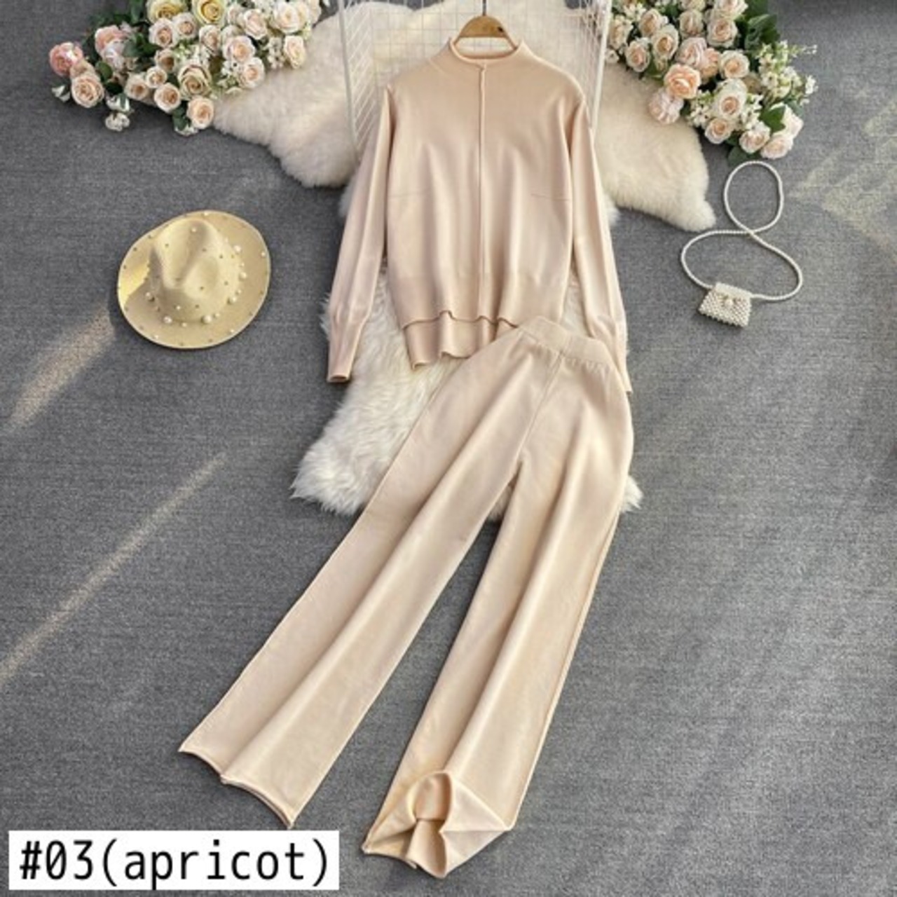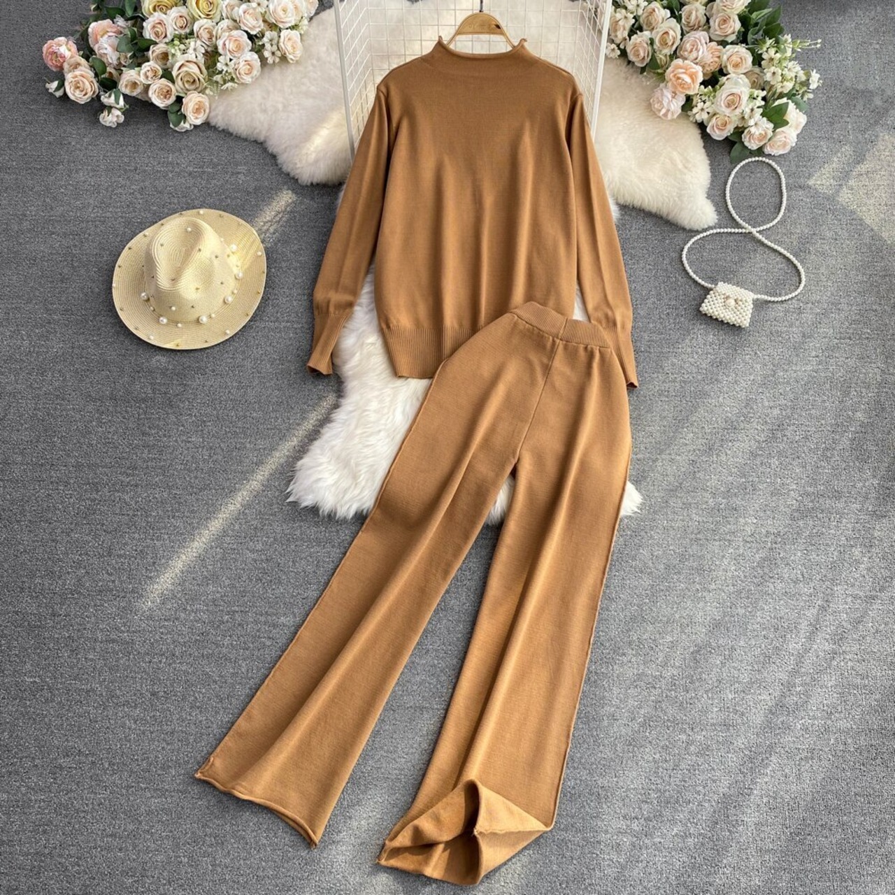 Nomikuma 2点セット レディース 衣装 ニット 半襟 長袖 プルオーバー ニット + ウエスト ワイドレッグ セーターパンツ ロング ワイドパンツ kor45960517006