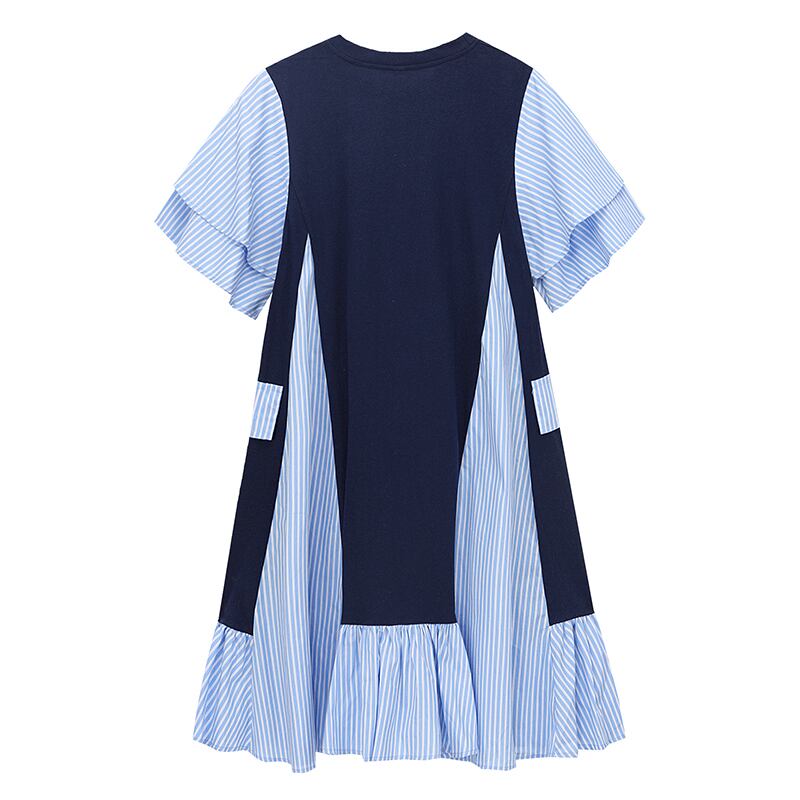 Nomikuma 2022 夏フェイク 2 ピーススウェットシャツドレスヒットカラーストライプ女性バタフライスリーブ因果 A ライン Vestidos サマー 夏物 Aライン kor48993009161