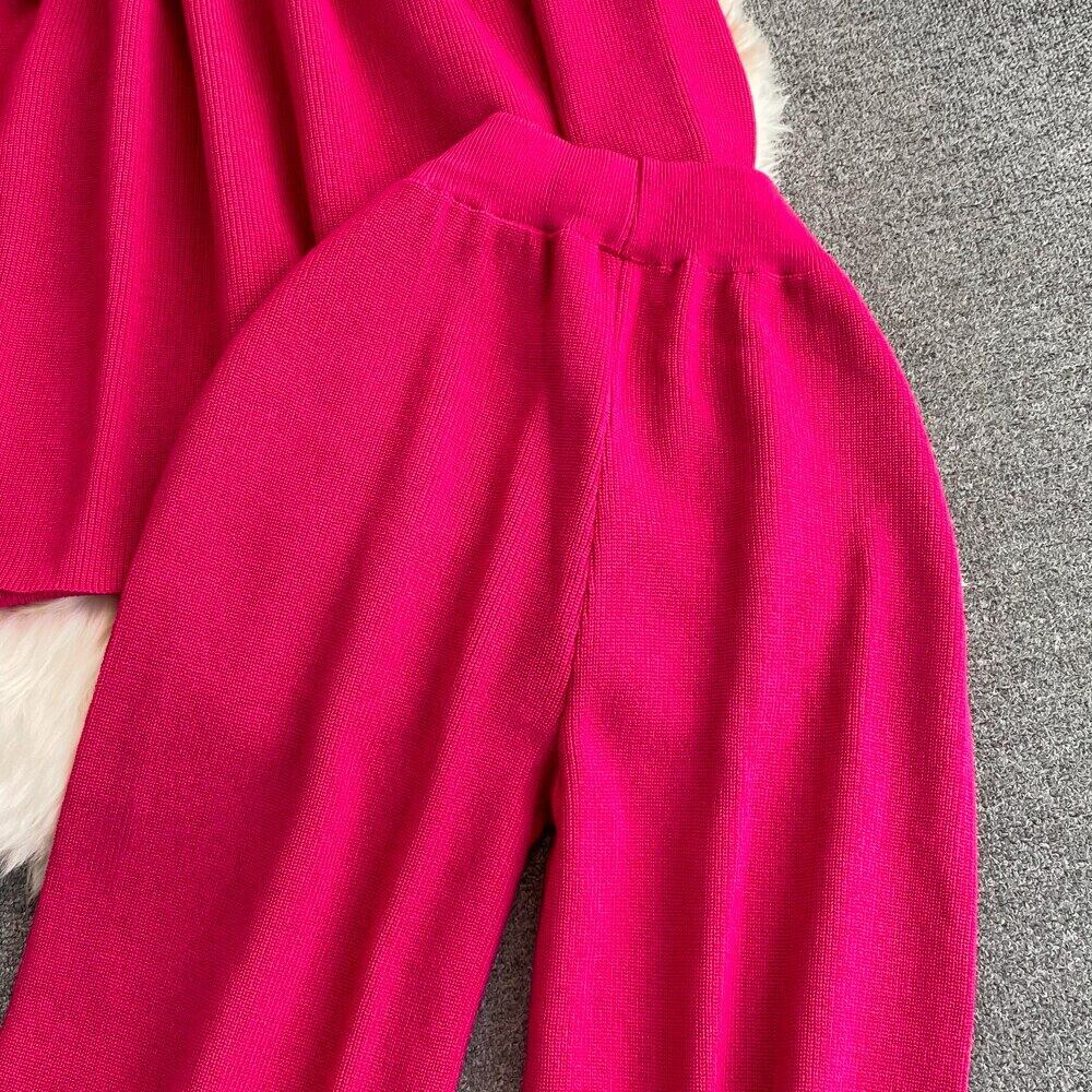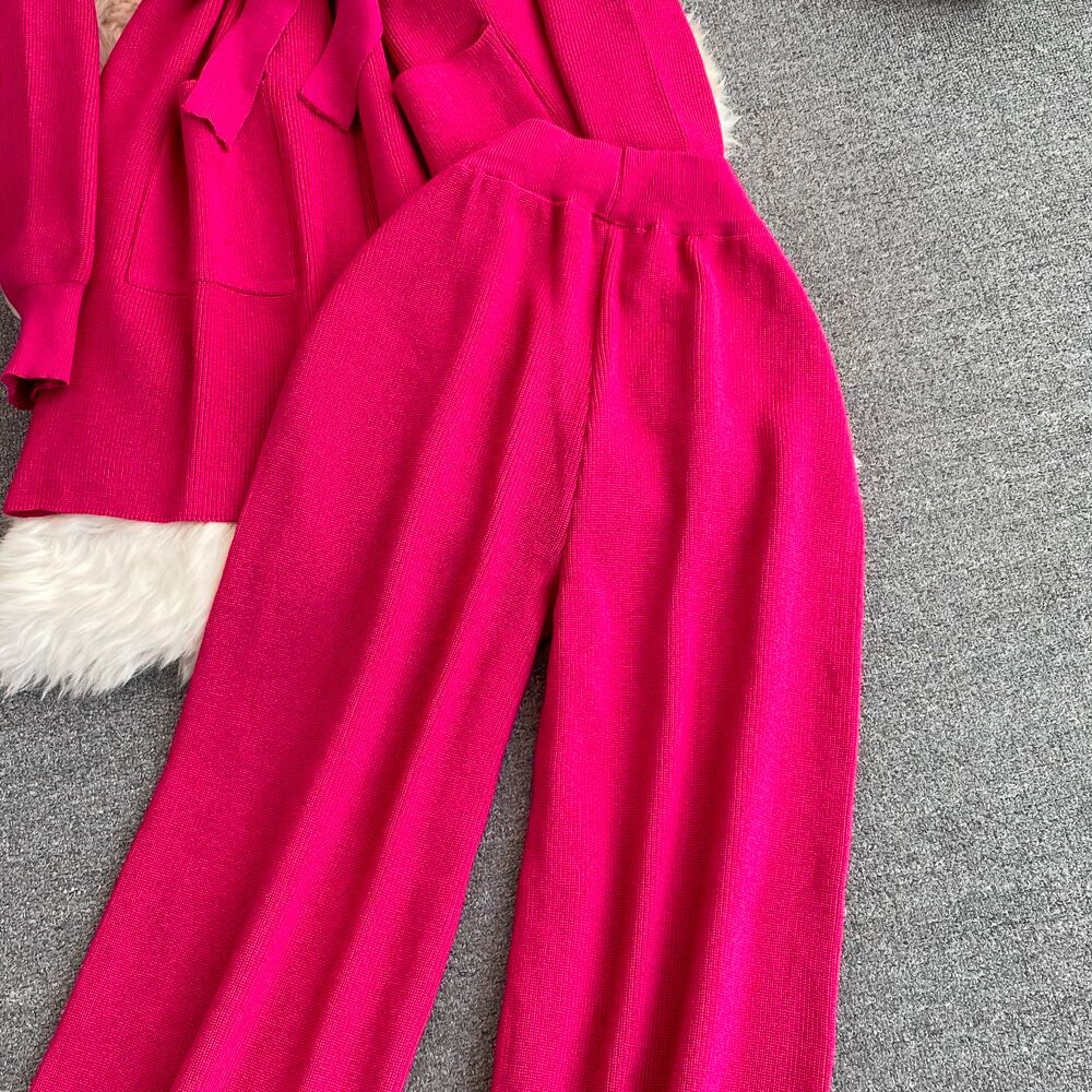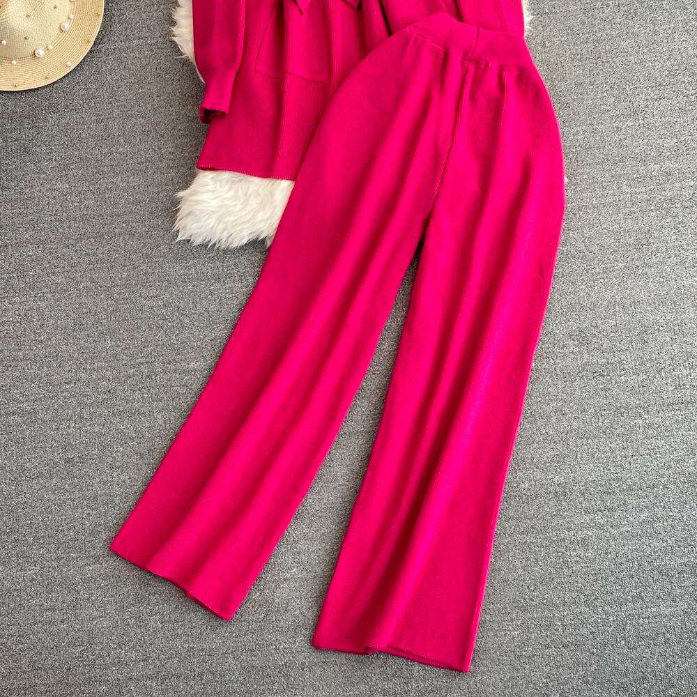 ノミクマ衣装因果ポケットレースアップニットカーディガンコート二枚ウエストワイドレッグセーターロングパンツ 2022 ワイドパンツ kor49321701423