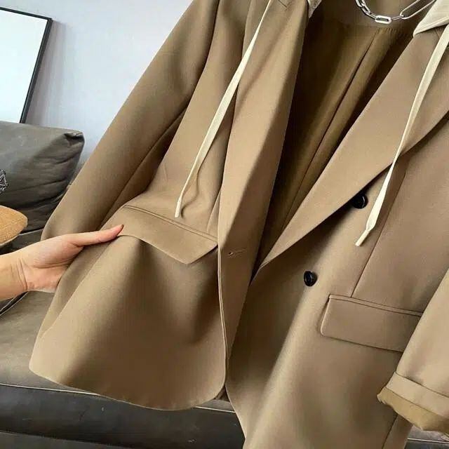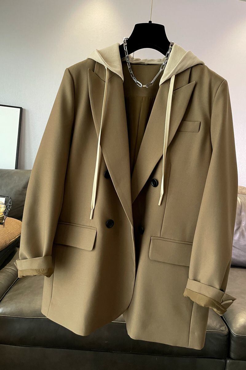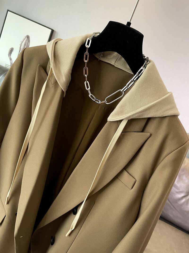 Nomikuma 2022 フード付きヒットカラーブレザーコートダブルブレスト長袖スーツジャケット秋の女性ブレザー ロング オータム 秋物 kor23663005758