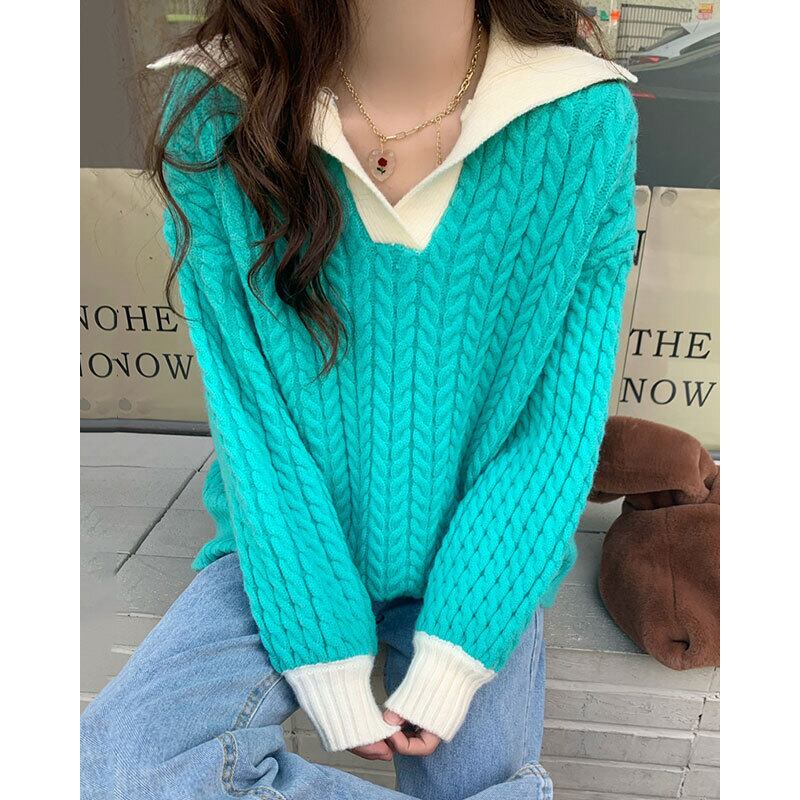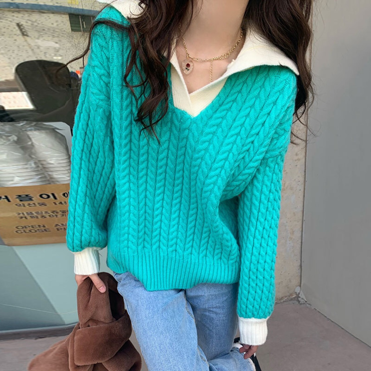 Nomikuma プルコントラストカラーターンダウンカラープルオーバーニットセーター秋冬 2022 ニットトップス女性 オータム 秋物 ウィンター 冬物 kor88945301531