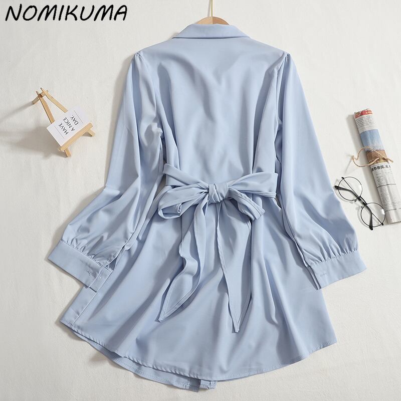 Nomikuma 偽二枚ソリッドシングルブレストブラウスドレス女性弓包帯スリムウエスト Vestidos 2022 秋のドレス リボン オータム 秋物 ソリッドカラー kor52778467830