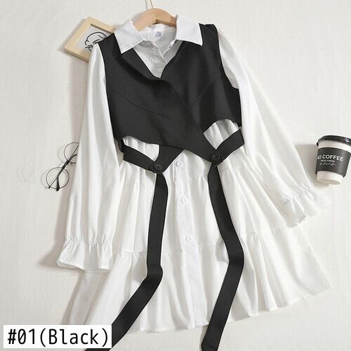 Nomikuma 因果セット女性 2022 秋シングルブレストブラウスドレス + 包帯スリムウエストショートベスト二枚 オータム 秋物 kor8257324000