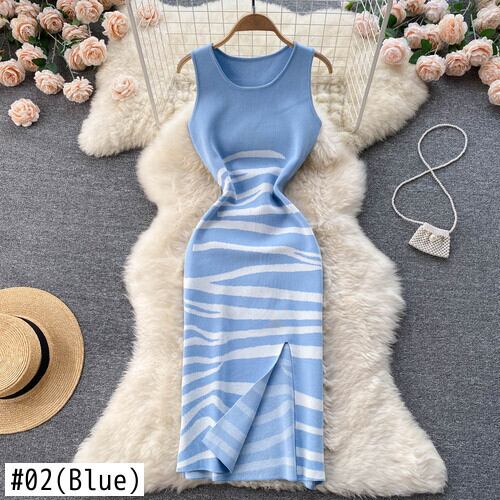 Nomikuma 夏ノースリーブ女性ドレスストライププリントスリムボディコンシックな Vestidos デセクシーなドレスの女性 サマー 夏物 kor88625368556