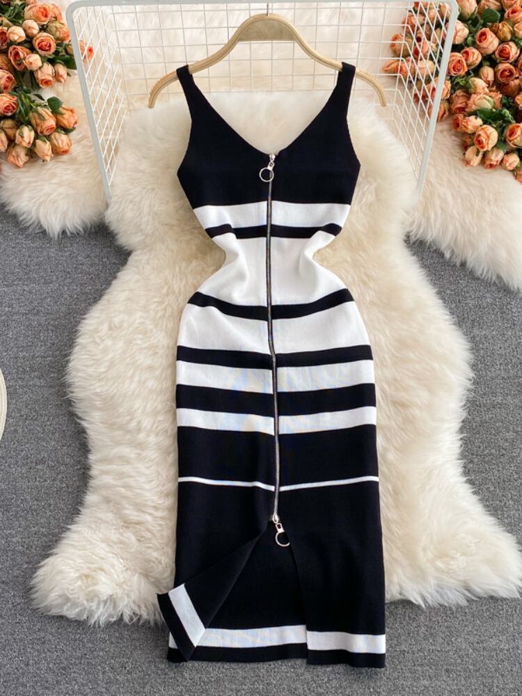 Nomikuma Vestidos De Summer ノースリーブ ストライプ スリム ボディコン ニット ドレス レディース セクシー Ropa サマー 夏物 kor36606246956