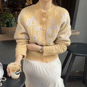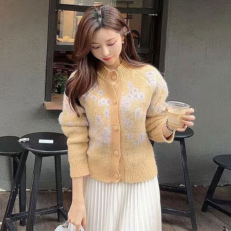 ノミクマ セーター カーディガン コート ジャカード 長袖 シングルブレスト Oネック ニット ジャケット 2022秋冬 ニット ロング オータム 秋物 ウィンター 冬物 kor9356147086