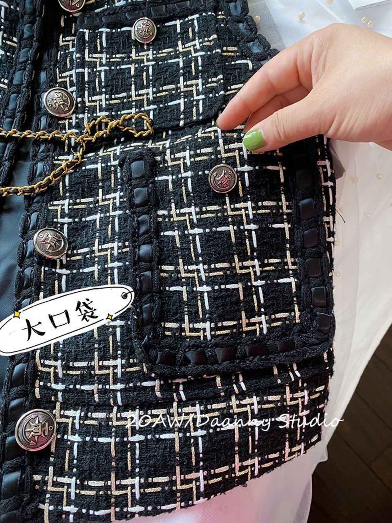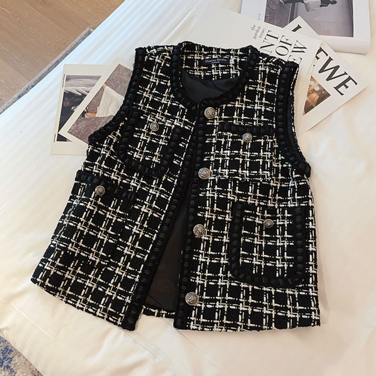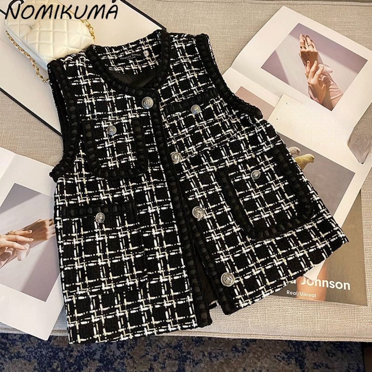 Nomikuma ツイードノースリーブシングルブレスト O ネックジャケット女性秋冬 2022 チョッキ因果生き抜く オータム 秋物 ウィンター 冬物 Oネック kor23738841984