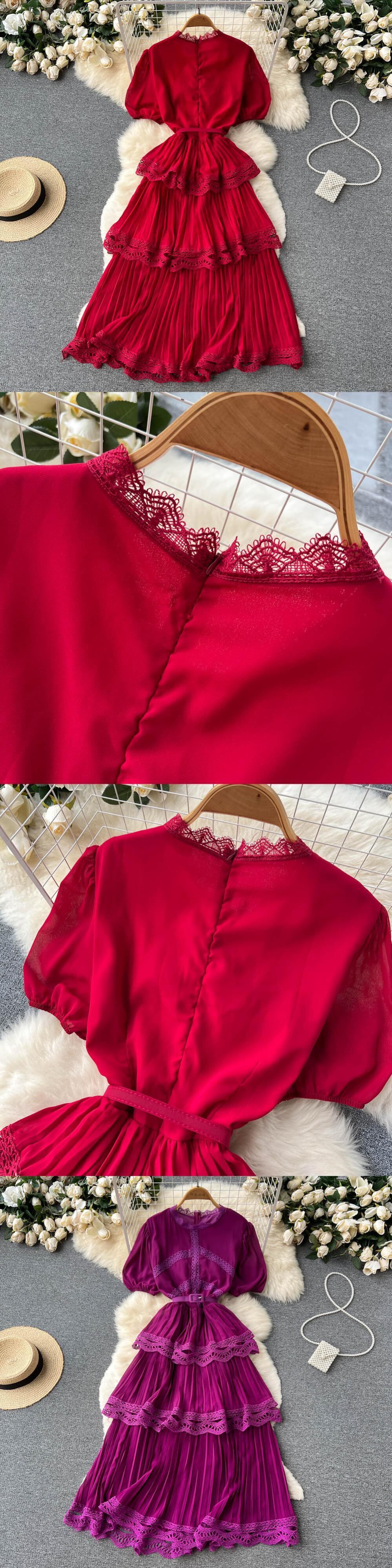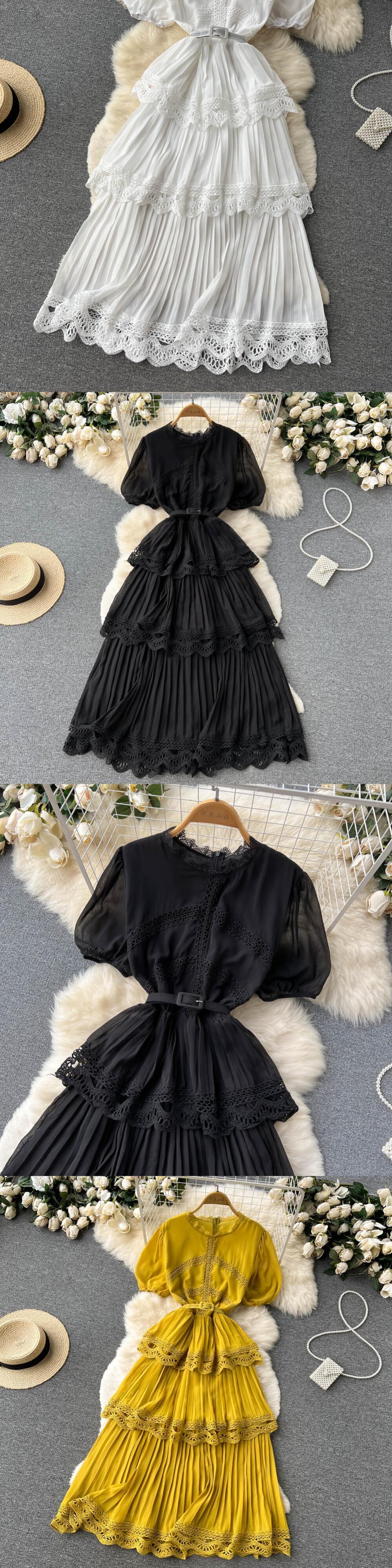Nomikuma 女性ドレスシックなレースパッチワークレイヤードフリルシフォンドレス 2022 夏ウエスト Vestido サマー 夏物 kor65200936479