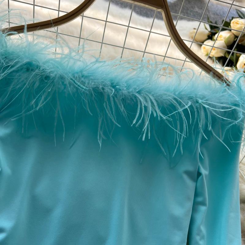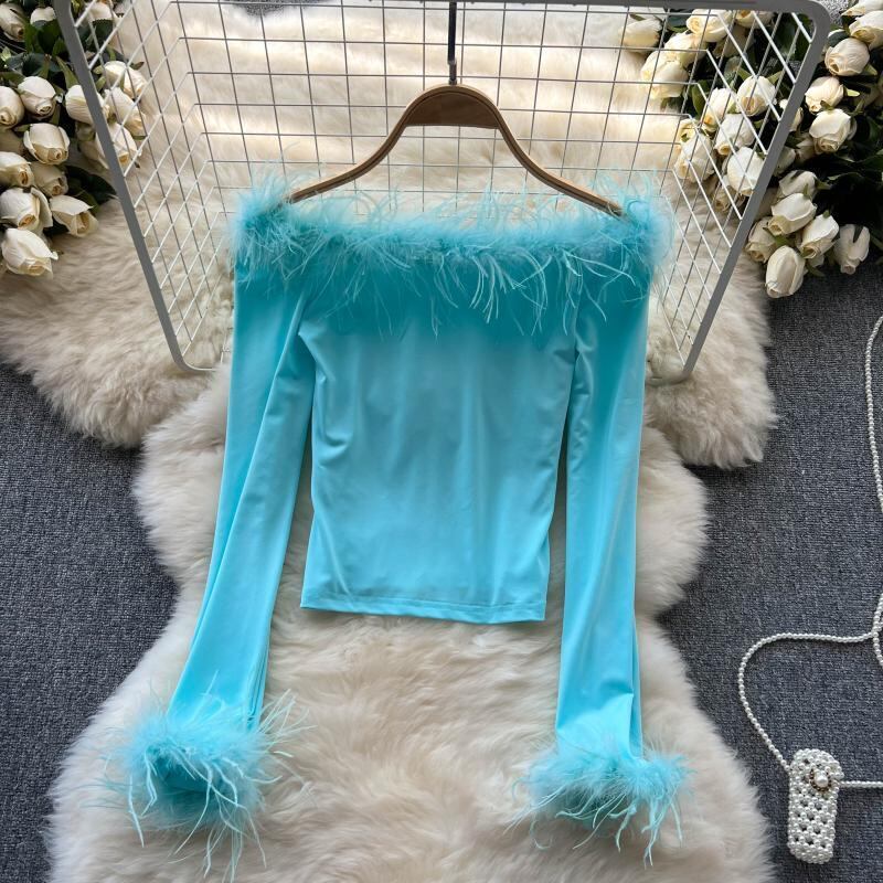 Nomikuma 毛皮パッチワークオフショルダー長袖ショート Tシャツ女性ストリート 2022 秋ソリッドグラフィック Tシャツ ロング オータム 秋物 ソリッドカラー kor95421858365