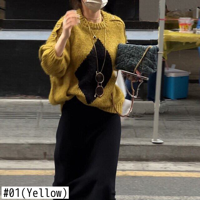 ノミクマ ヒットカラー アーガイル プルオーバー セーター 2022年秋冬 プル 因果 長袖 Oネック ニット トップス ロング オータム 秋物 ウィンター 冬物 kor71175766985