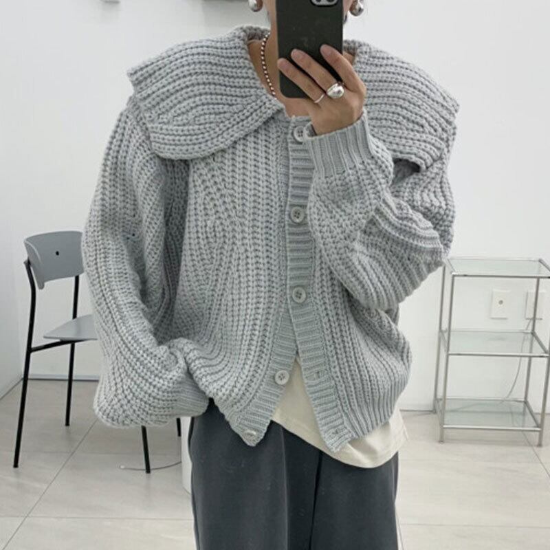 Nomikuma 因果ターンダウン襟の女性のセーターコートシックな秋冬ニットカーディガン 2022 長袖ニットジャケット ロング オータム 秋物 ウィンター 冬物 kor53106920535