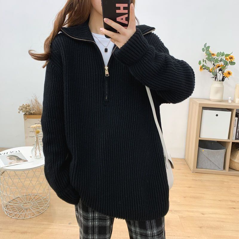 Nomikuma 女性ジッパースタンドネックセーターコート因果長袖プルオーバーニットトップス 2022 秋冬ニット生き抜く ロング オータム 秋物 ウィンター 冬物 kor14467067897