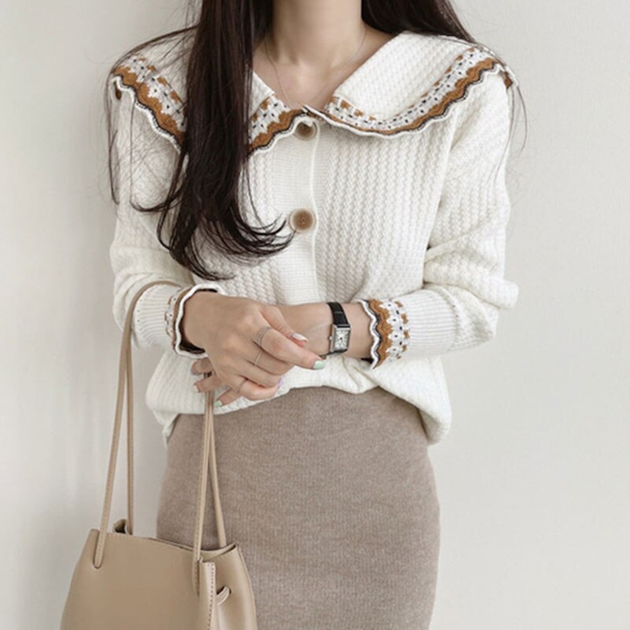 Nomikuma コントラストカラーピーターパン襟セーターコート長袖 2022 秋冬ニット女性カーディガン ロング オータム 秋物 ウィンター 冬物 kor53061592929
