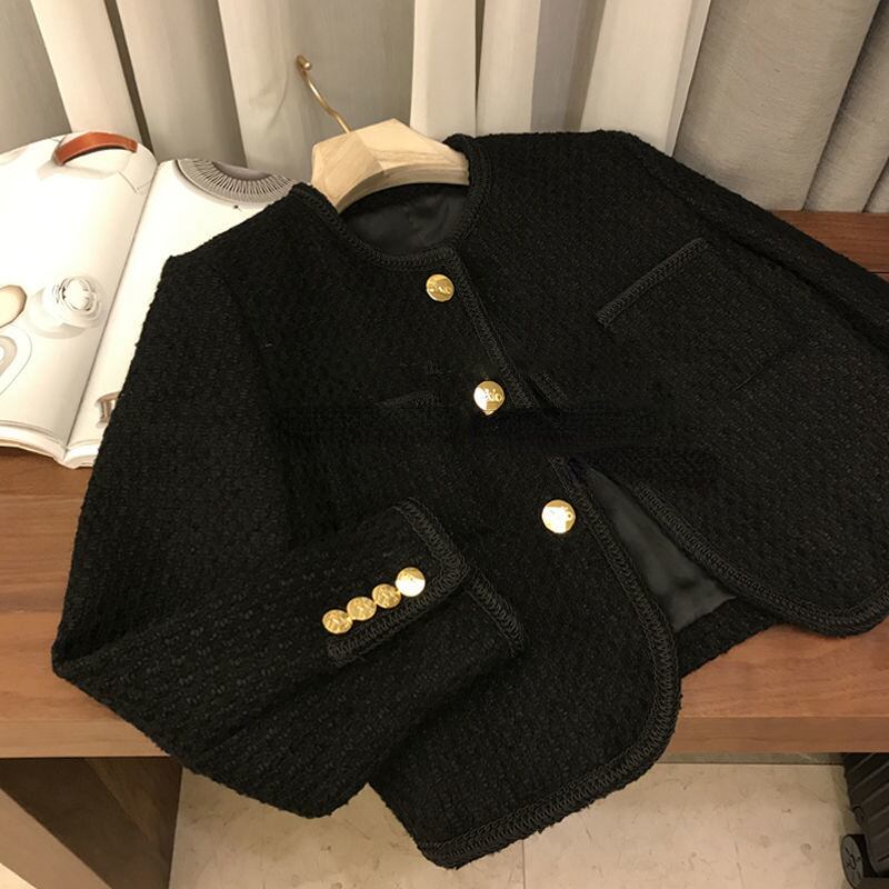 Nomikuma 2022 秋ショートジャケット女性長袖シングルブレスト O ネック生き抜くトップスショートコート ロング オータム 秋物 Oネック kor45528245788