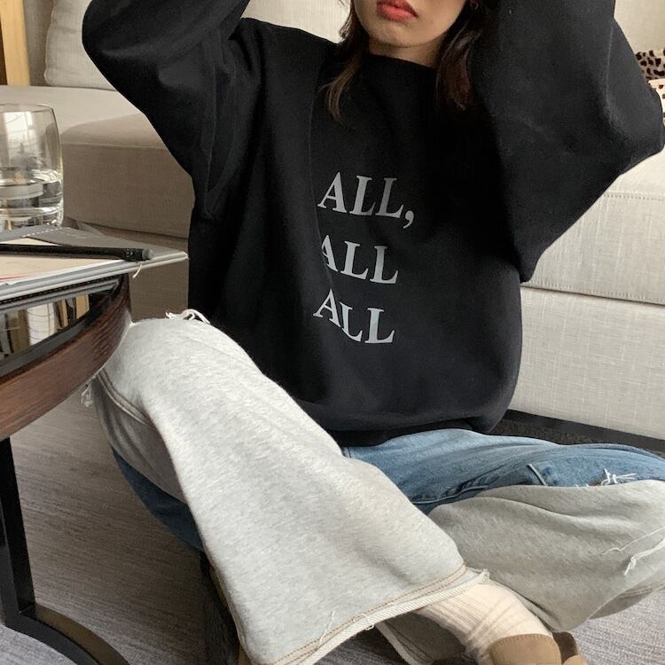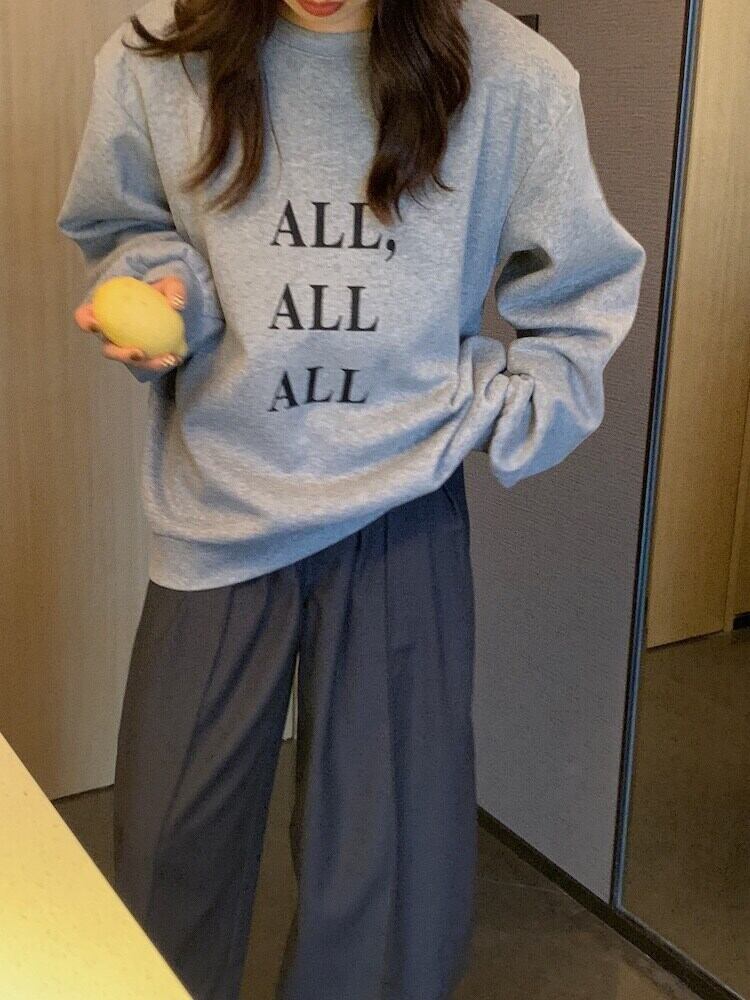 Nomikuma 因果手紙プリントスウェットシャツ女性長袖 O ネック秋冬フリースパーカープルオーバージャンパー ロング オータム 秋物 ウィンター 冬物 Oネック kor82706914947