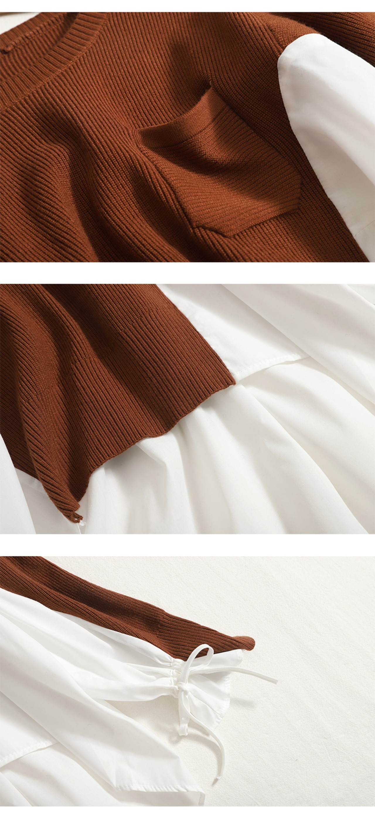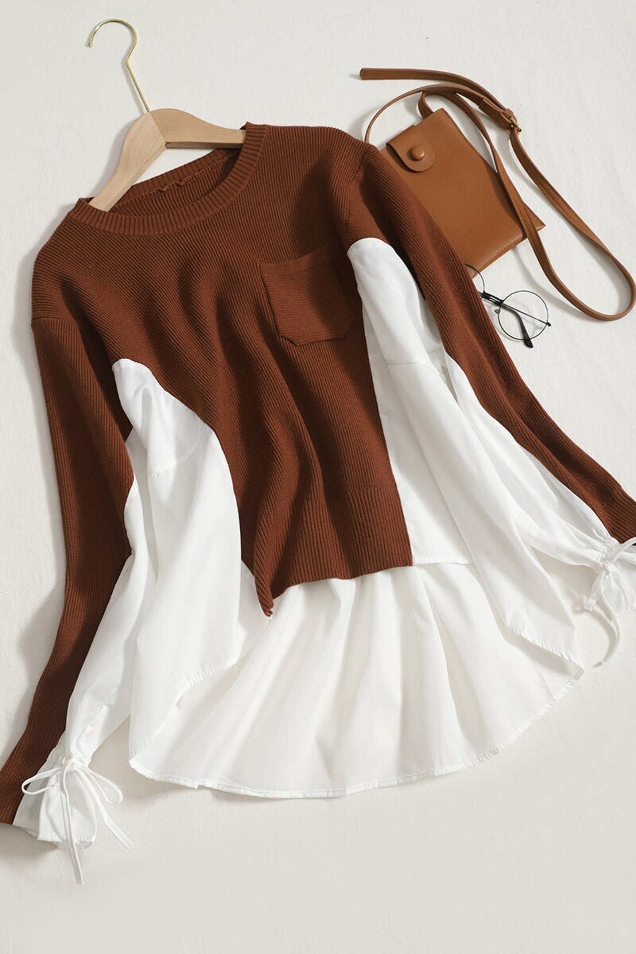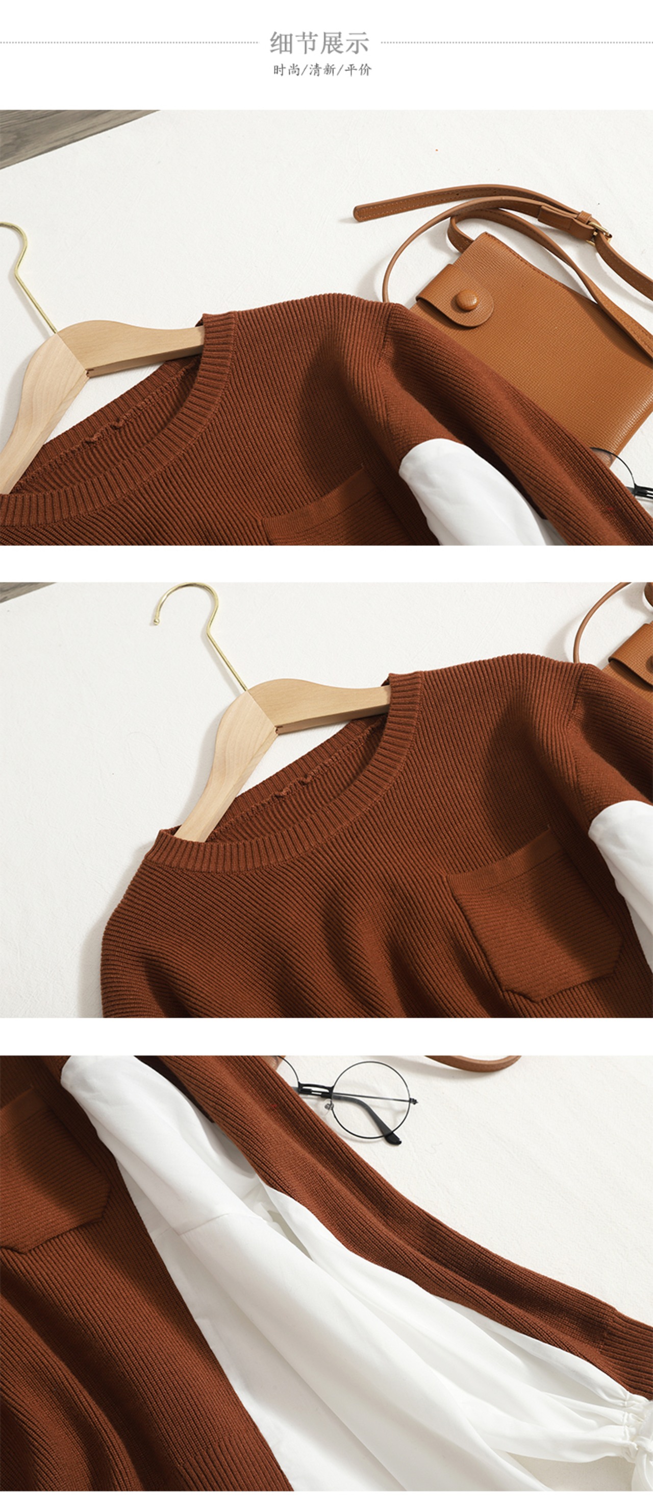 Nomikuma Bouse パッチワークニットトップス因果レースアップ長袖 O ネック女性セーター 2022 秋冬プル ロング オータム 秋物 ウィンター 冬物 Oネック kor5280208051