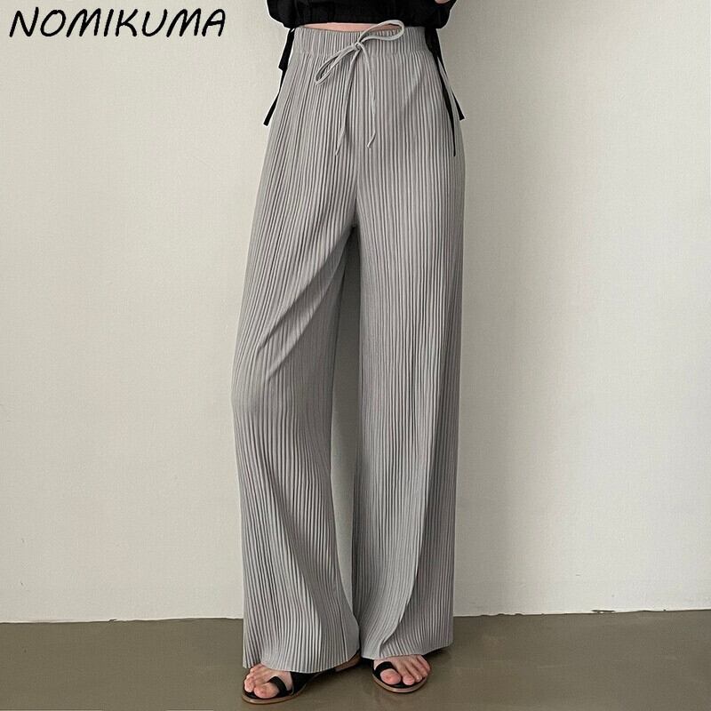 Nomikuma レースアップウエスト女性パンツ因果 2022 夏長ズボン無地 Wid Eleg ロング サマー 夏物 ソリッドカラー kor86472853234
