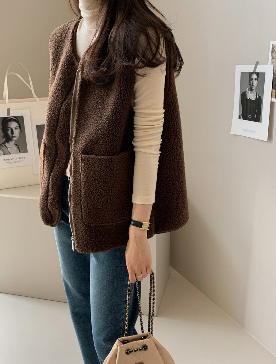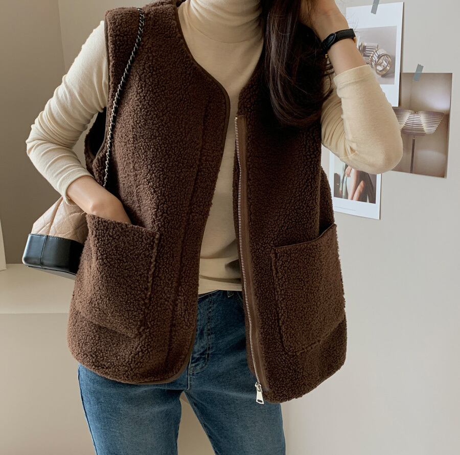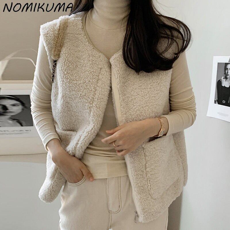 Nomikuma シックな秋ノースリーブ女性ジャケットラムウールジッパー O ネックチョッキ 2022 秋ベスト オータム 秋物 Oネック kor69340618102