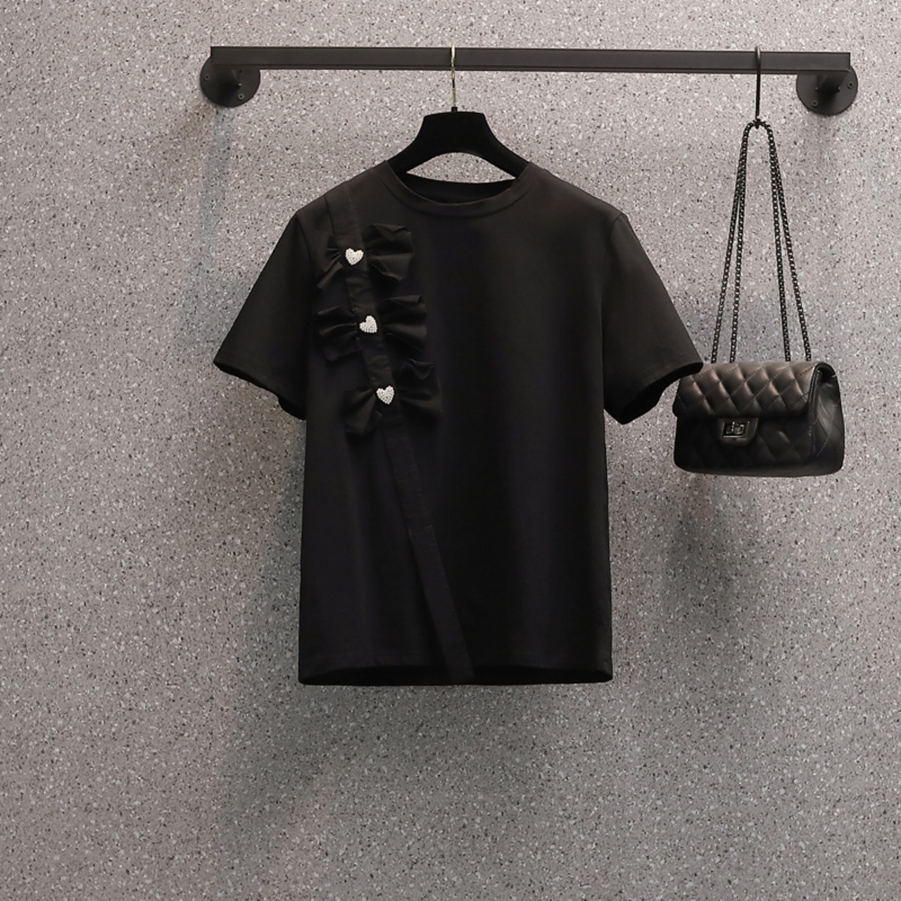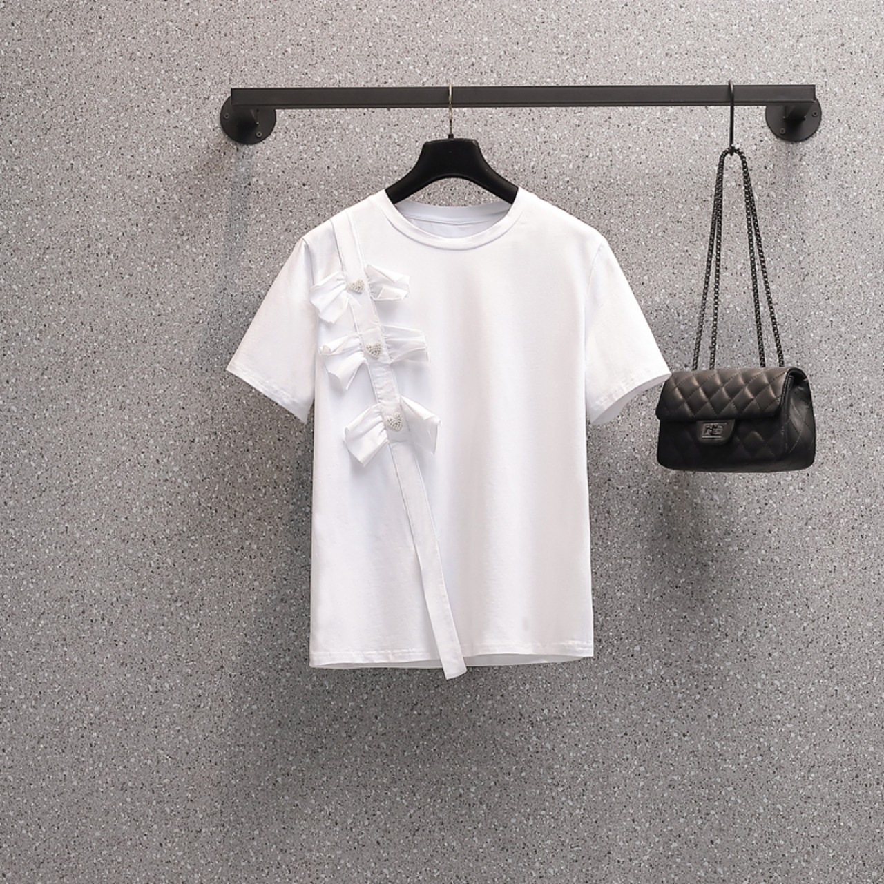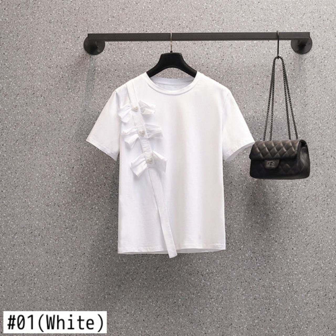 Nomikuma 2022 夏半袖女性 Tシャツシックな 3D ちょう結び甘い Tシャツトップス因果 O ネックグラフィック Tシャツ ショート リボン ハーフスリーブ 大人ガーリー スウィート キュート カジュアル サマー 夏物 Oネック kor64173994153