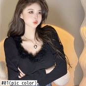 Nomikuma Tel 秋ニットパフスリーブスリムニットトップス女性 V ネック底入れプルオーバーセーター オータム 秋物 Vネック kor94157463293