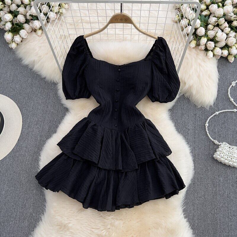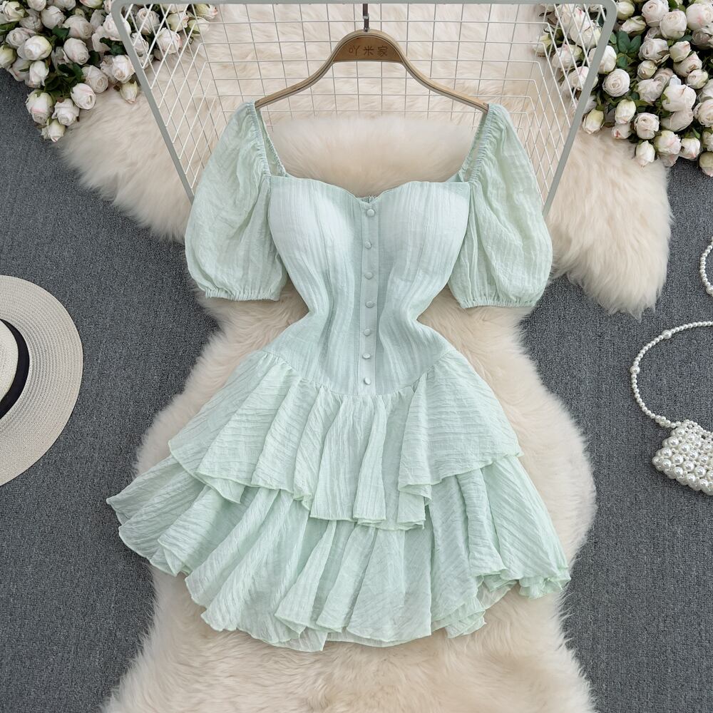 Nomikuma 2022 夏の女性のドレススクエアカラー半袖ドレスウエストシックなフリル Vestidos ショート ハーフスリーブ サマー 夏物 スクウェア kor25356285997
