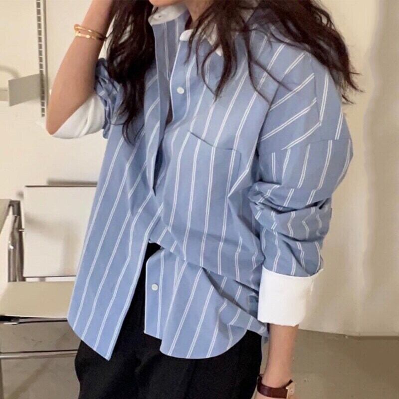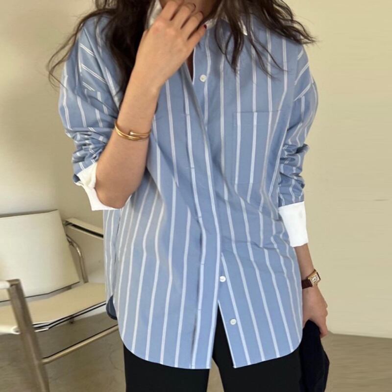 Nomikuma シックな秋のターンダウンカラーヒットカラーストライプブラウス長袖因果女性シャツ 2022 ロング オータム 秋物 kor45989068572