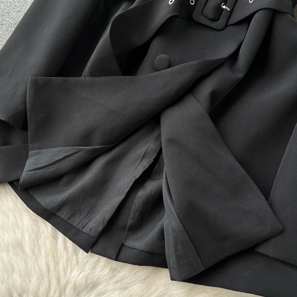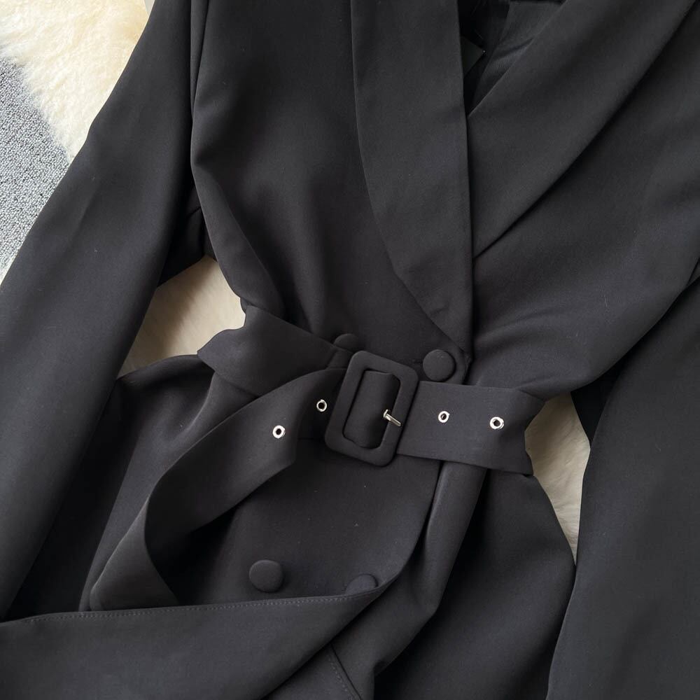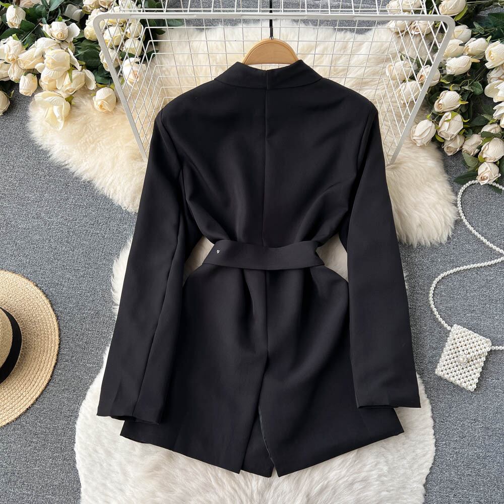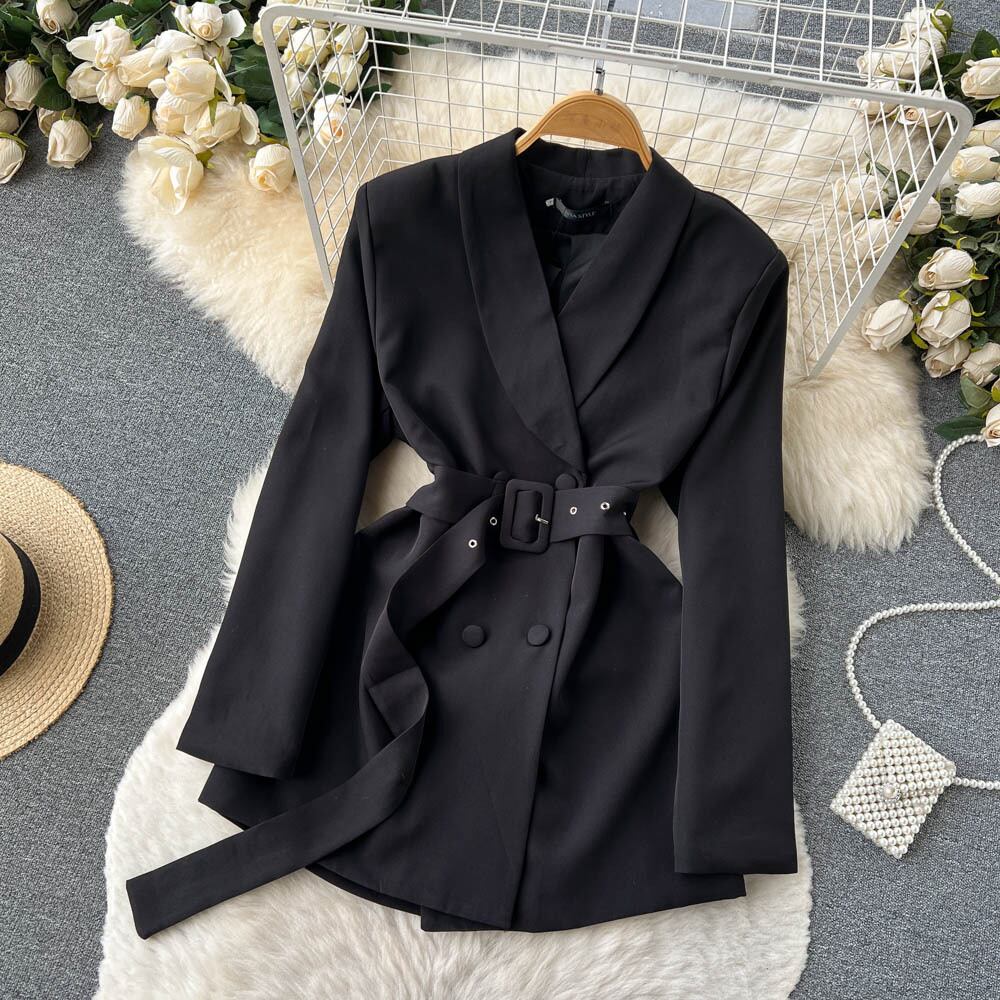 ノミクマ ダブルブレスト ベルト スリムウエスト ミディアムロング ブレザーコート 長袖 ノッチカラー スーツジャケット 2022 ハーネス kor6850350249