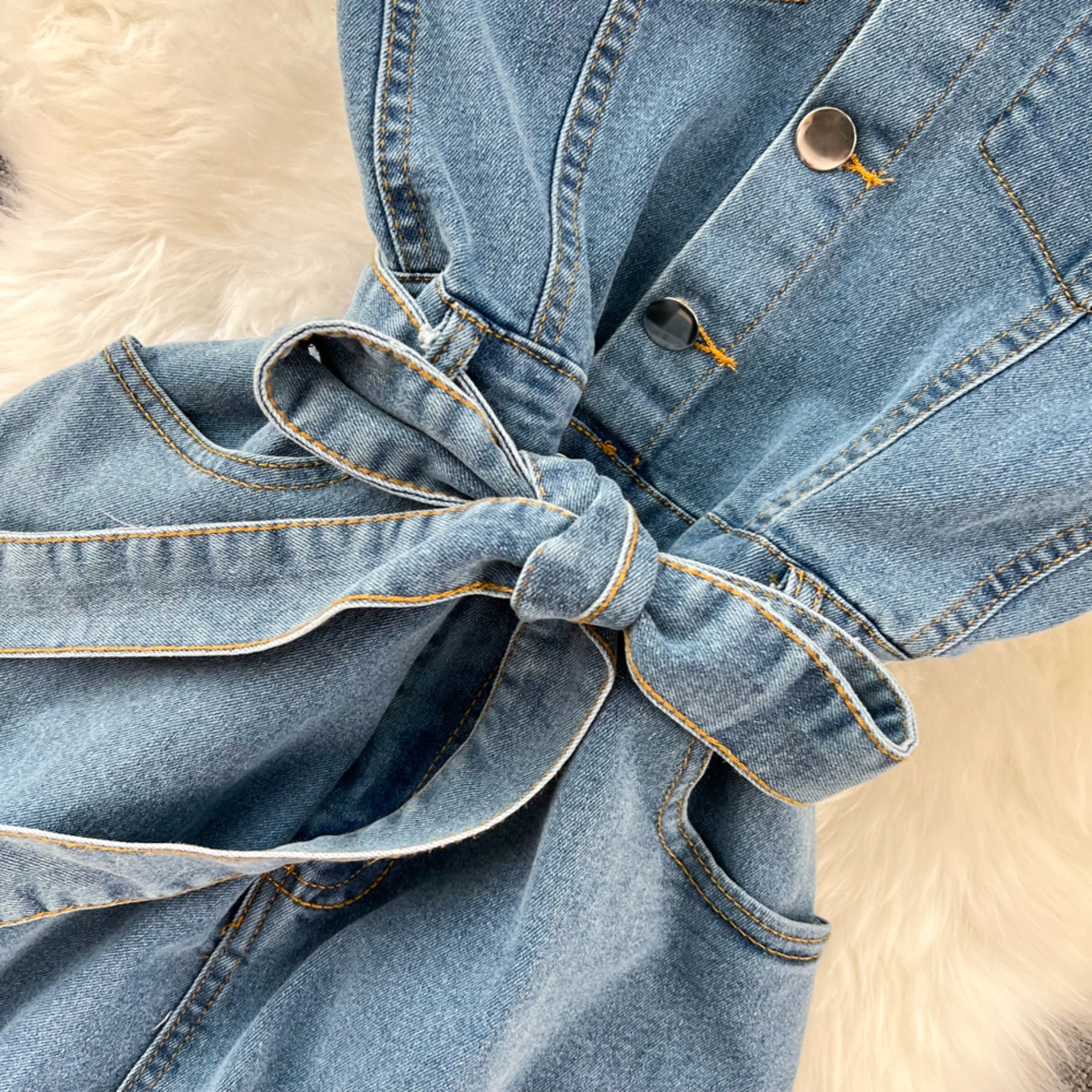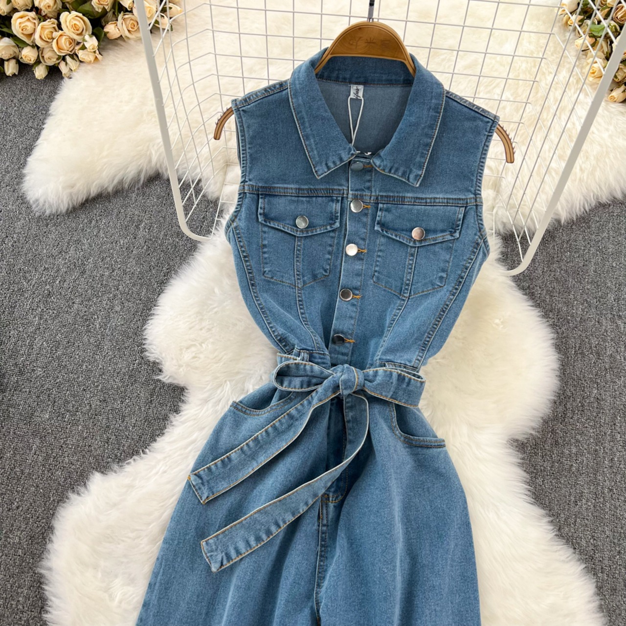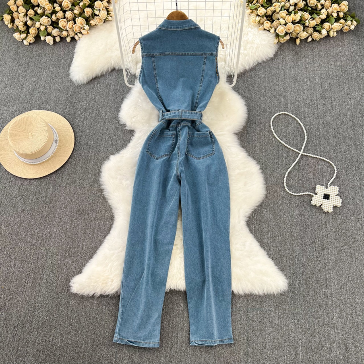 Nomikuma ノースリーブ徳民ジャンプスーツ女性ロンパース弓包帯スリムウエストストレートジーンズボディスーツ リボン kor87122570714