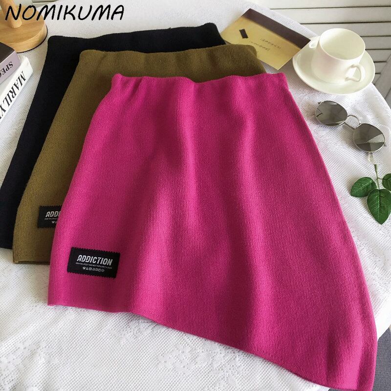 Nomikuma ニットスカート女性秋冬ウエスト不規則な A ラインのセータースカート段 Faldas デ 2022 オータム 秋物 ウィンター 冬物 Aライン kor50994540988