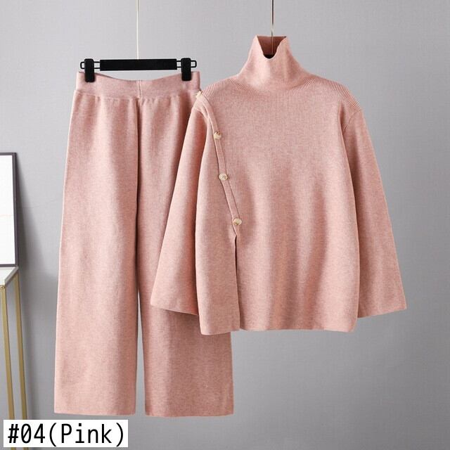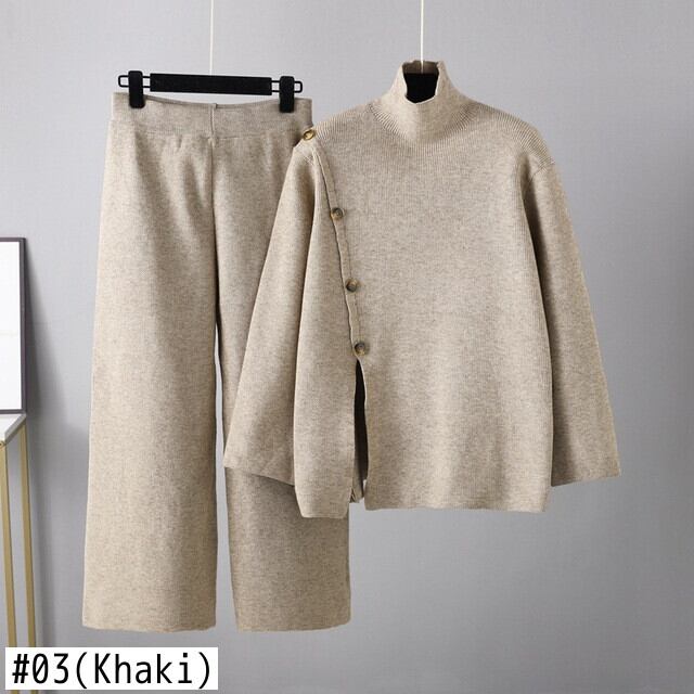 Nomikuma セータートラックスーツ女性ツーピースセット長袖タートルネックスプリットプルオーバーニットウェア + ウエストワイドレッグパンツ ロング ワイドパンツ kor37580994396