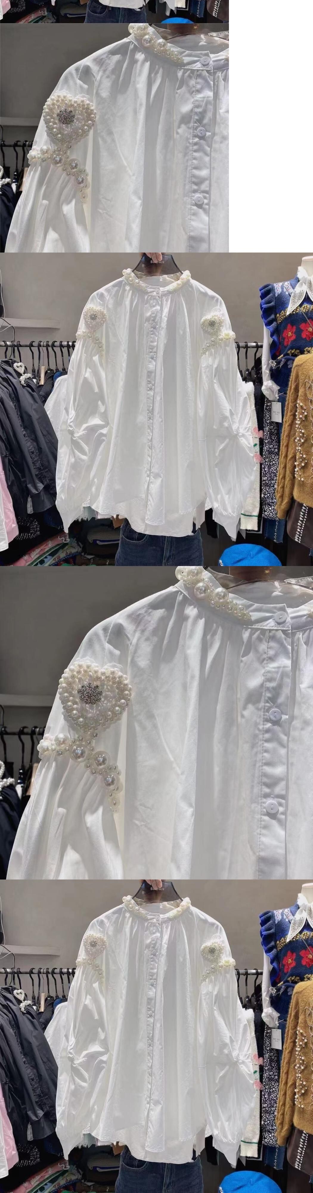 Nomikuma シックなビーズ女性ブラウスランタンスリーブスタンドカラーシャツ春秋デ スプリング 春物 オータム 秋物 kor61919576716