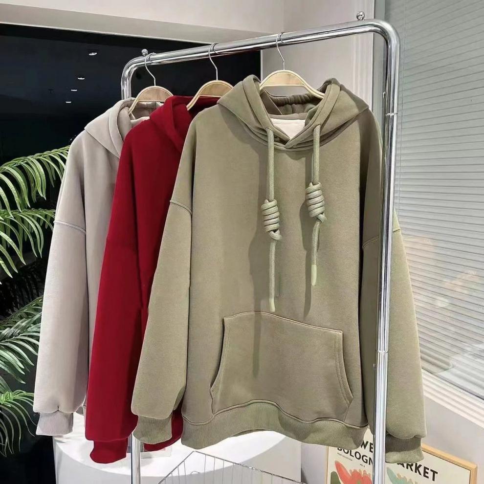 Nomikuma秋冬フリース巾着フード付きプルオーバースウェットシャツ因果長袖パーカー無地トップジャンパー ロング オータム 秋物 ウィンター 冬物 ソリッドカラー kor85903151552