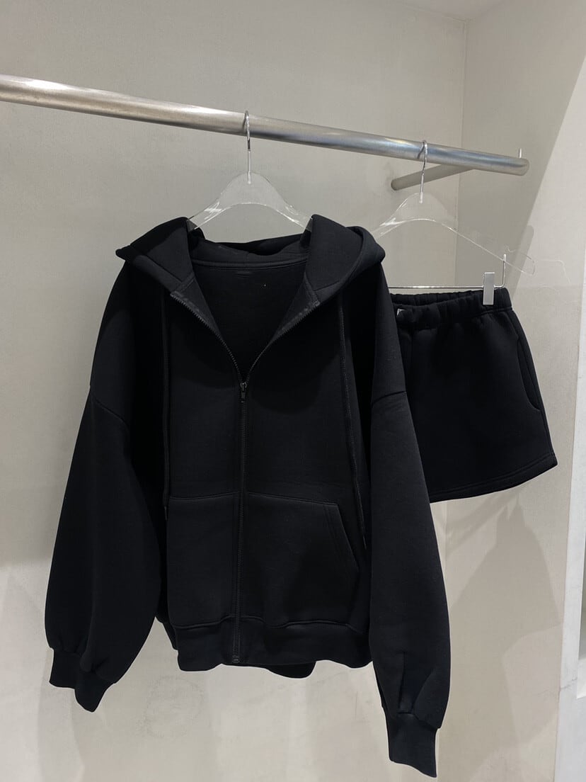 Nomikuma 秋冬二枚女性セット因果ジッパーフード付きカーディガンコート + 弾性ウエストショーツ無地衣装 エラスティック 伸縮 オータム 秋物 ウィンター 冬物 ブルマー ソリッドカラー kor63128998456