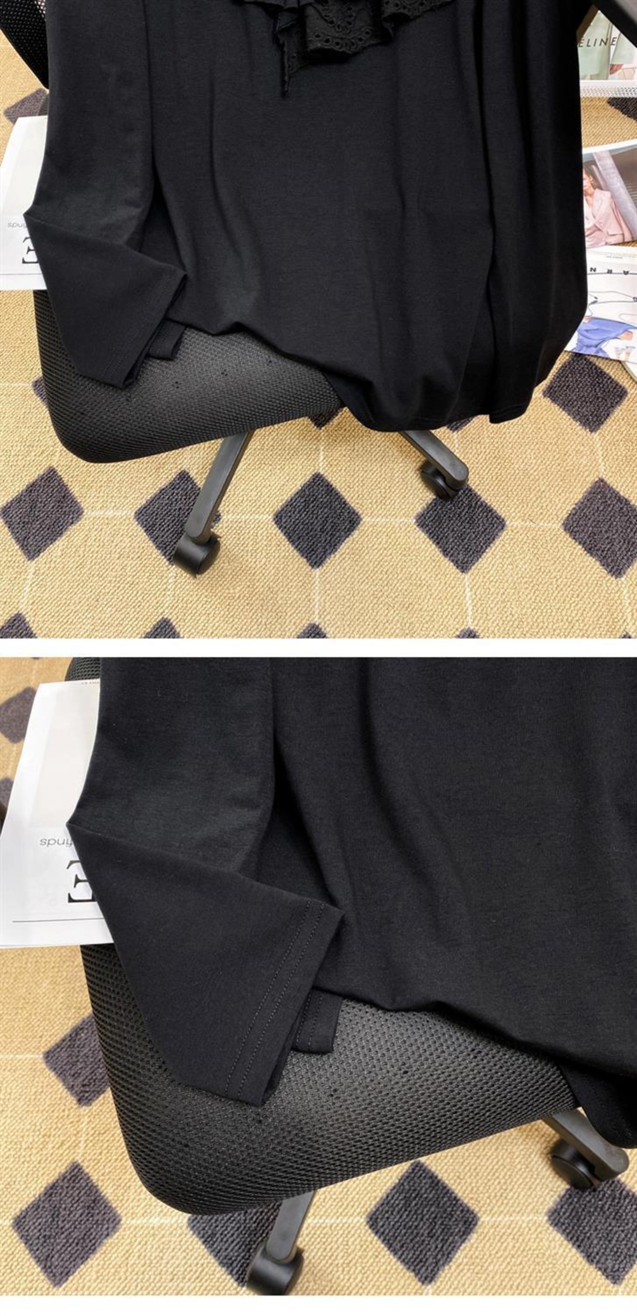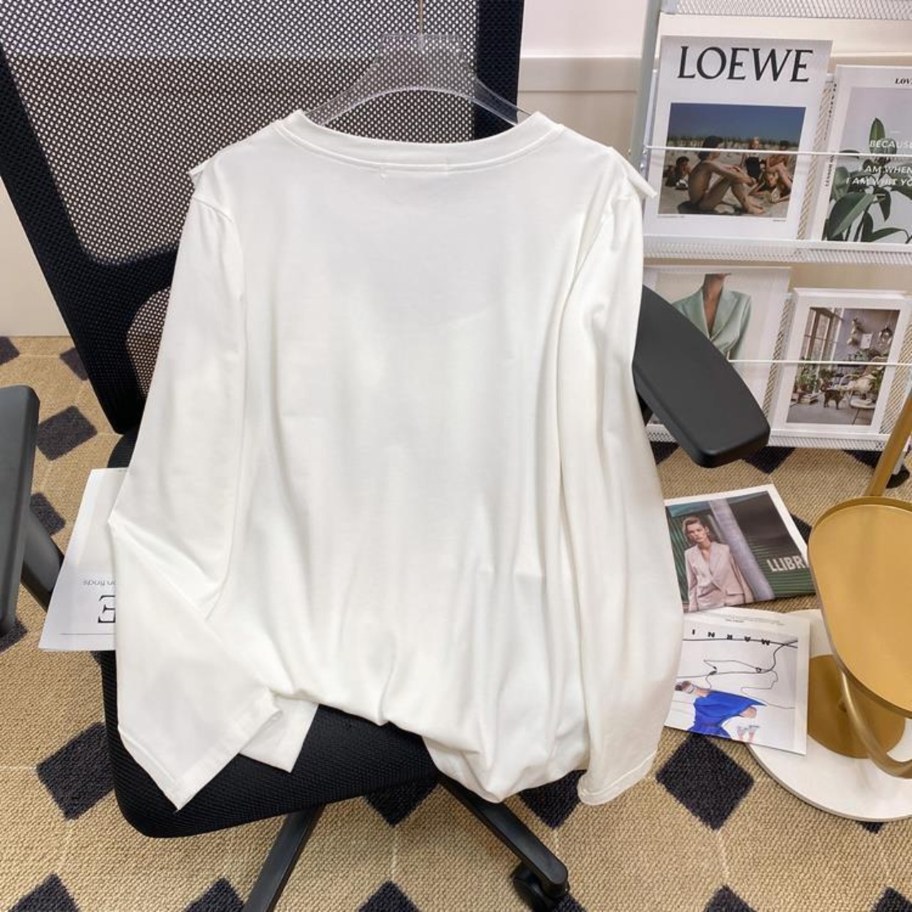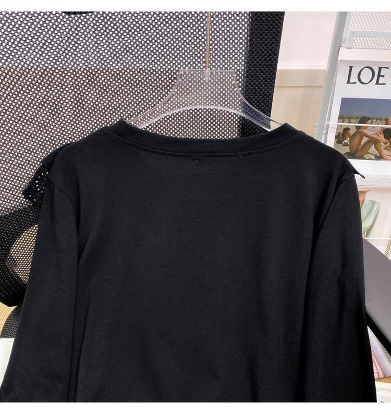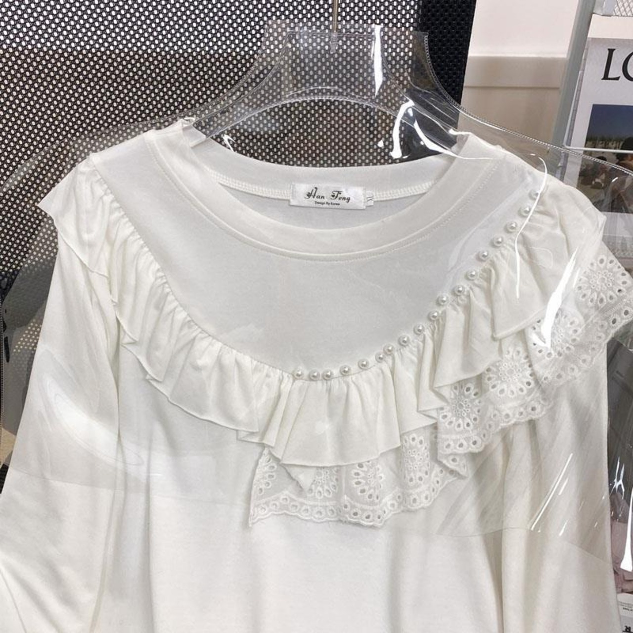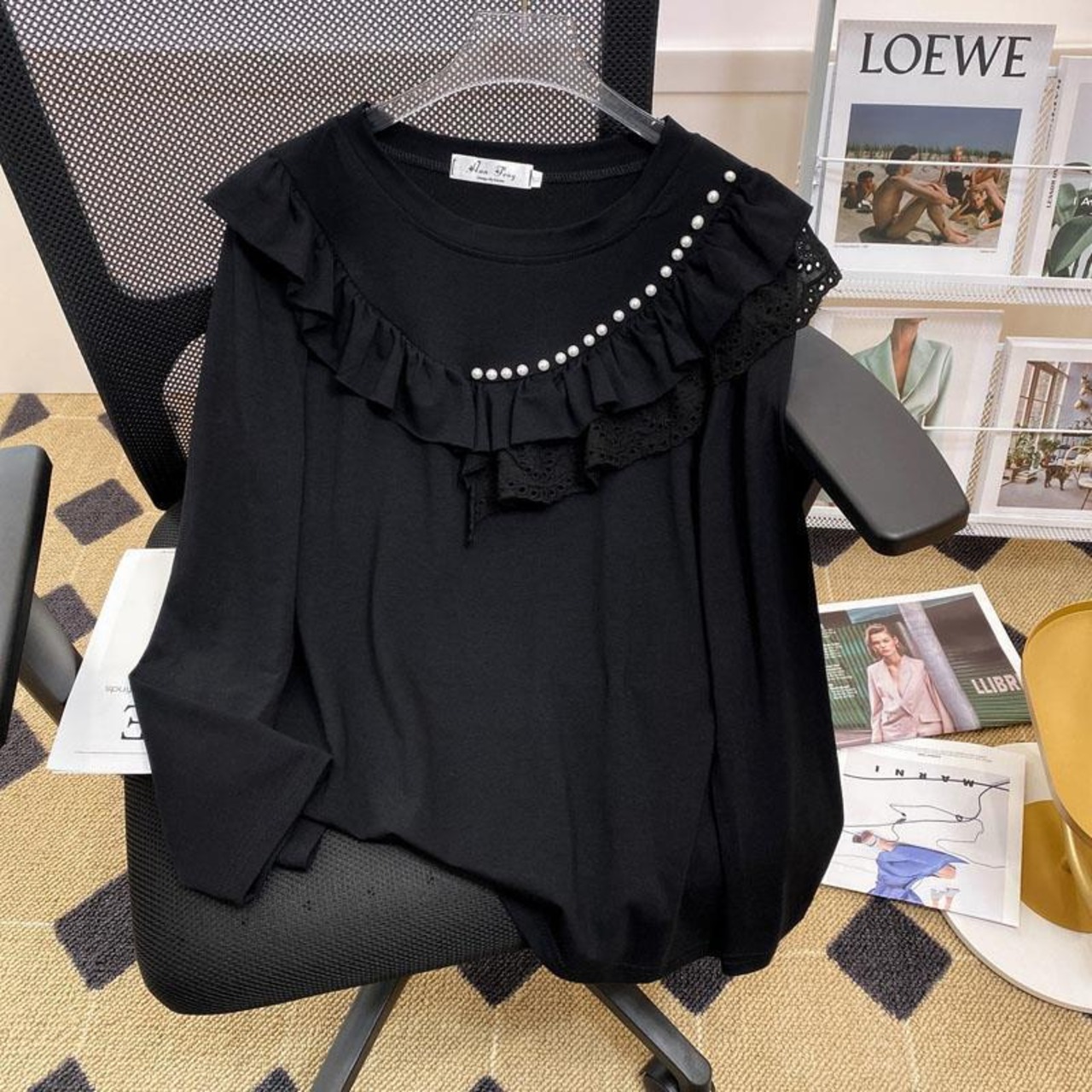 Nomikuma シックなビーズフリルパッチワーク因果シャツ女性長袖 O ネック Tシャツトップス春秋の Tシャツ ロング スプリング 春物 オータム 秋物 Oネック kor36881105858
