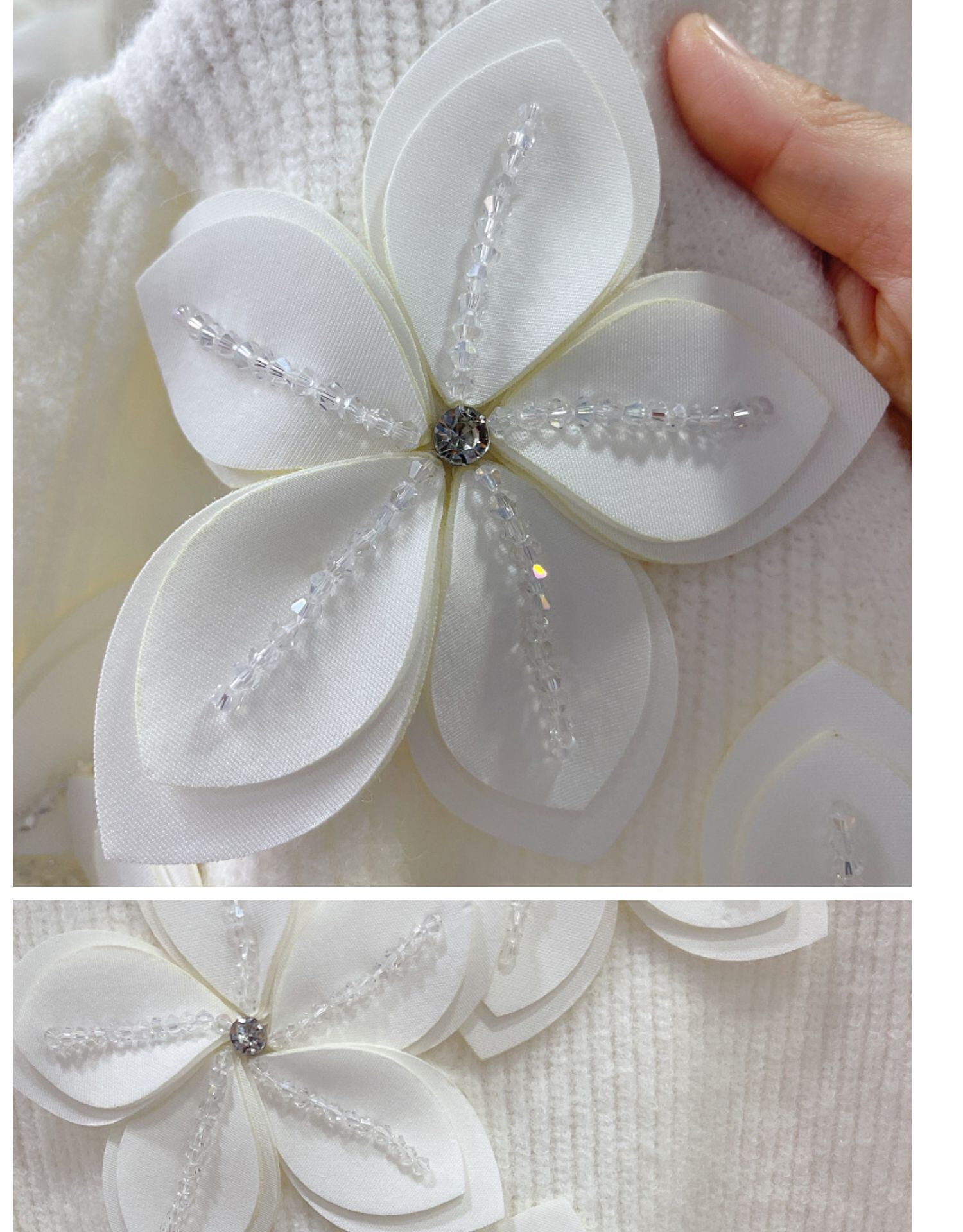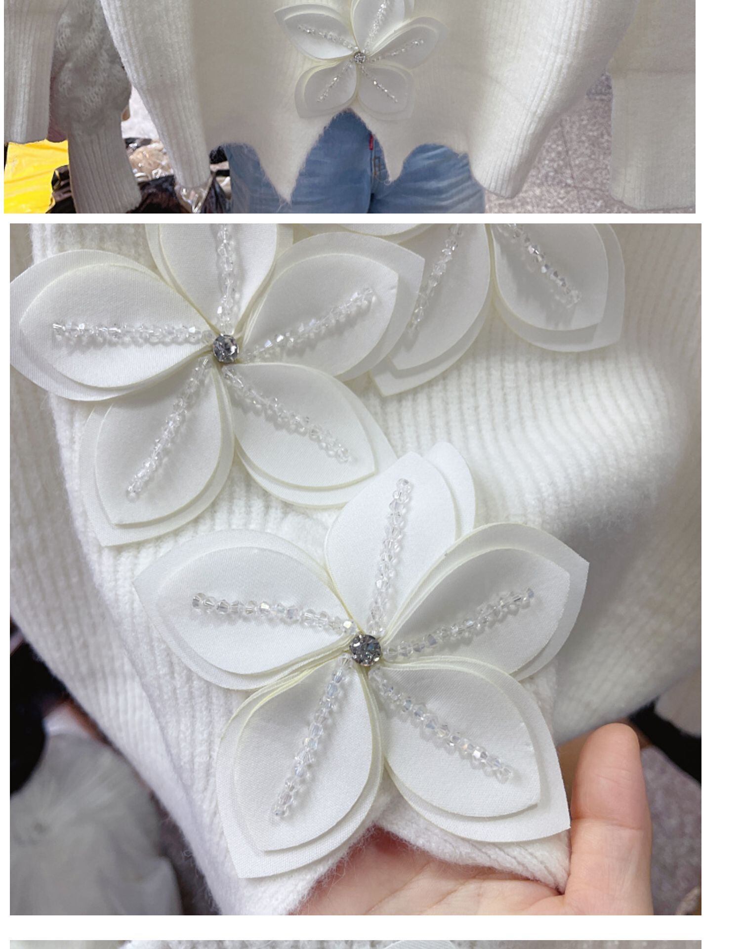 Nomikuma 秋冬 ニットセーター プルオーバー シック 立体 ビーズ 花柄 ニット カジュアル 長袖 Vネック ニット トップス ロング オータム 秋物 ウィンター 冬物 フラワーデザイン kor11860919432
