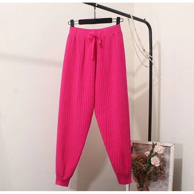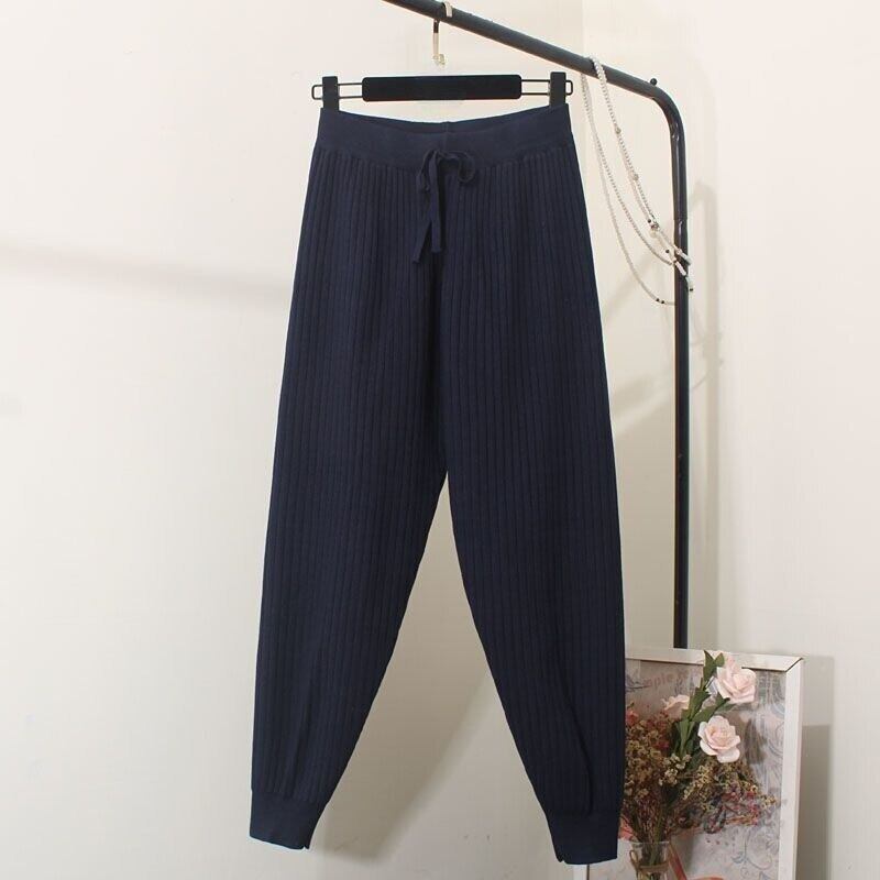 Nomikuma 因果ニットハーレムパンツ女性秋冬ソリッドアンクル丈のズボンレースアップウエストセーターパンツ オータム 秋物 ウィンター 冬物 ソリッドカラー kor98203631879