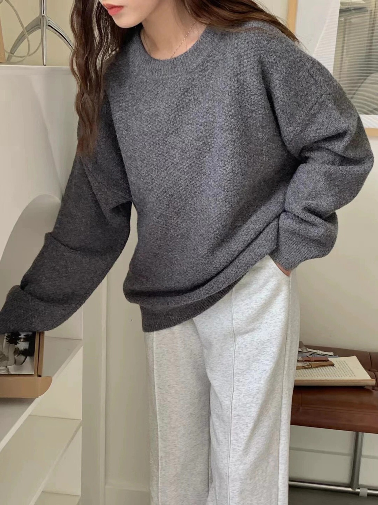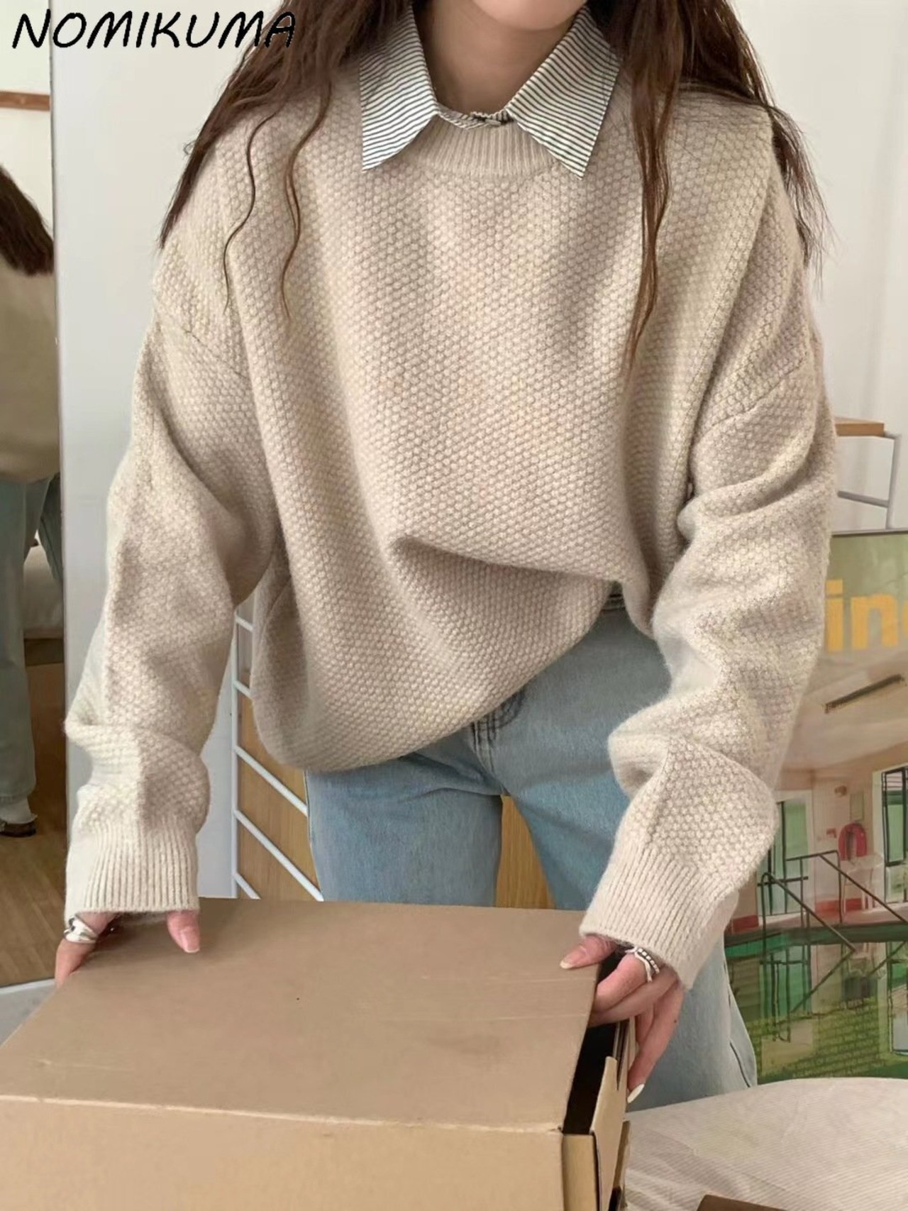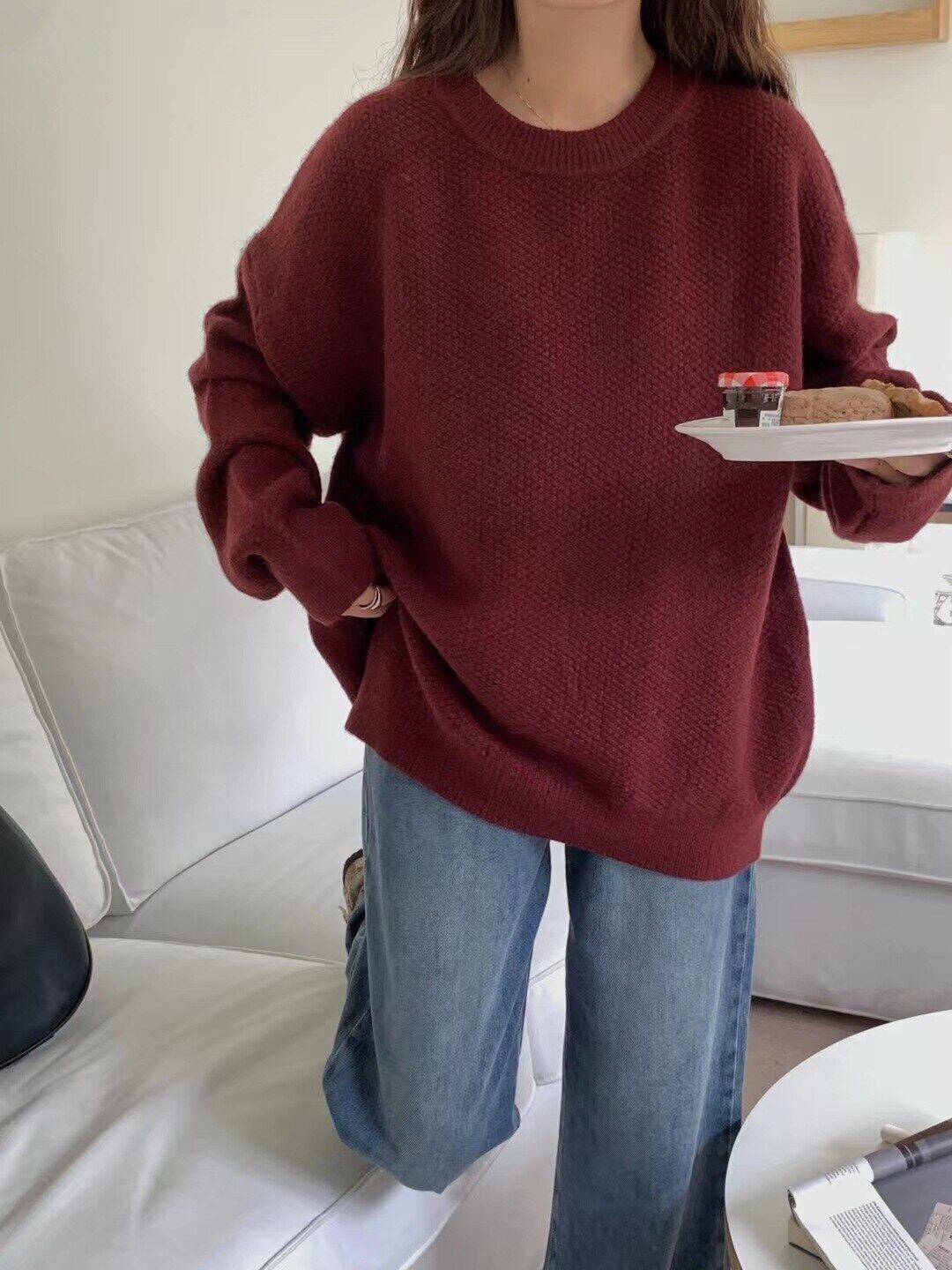 Nomikuma セーター女性秋冬因果無地ニットトップ長袖 O ネックプルオーバーニットジャンパー ロング オータム 秋物 ウィンター 冬物 Oネック ソリッドカラー kor88506418812