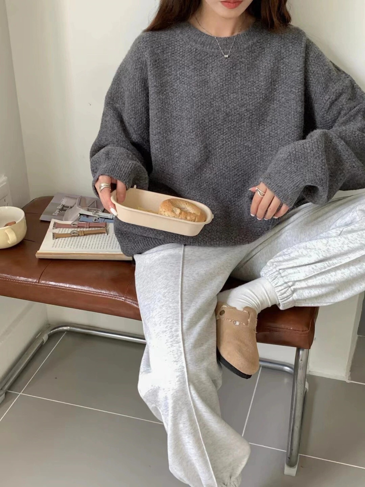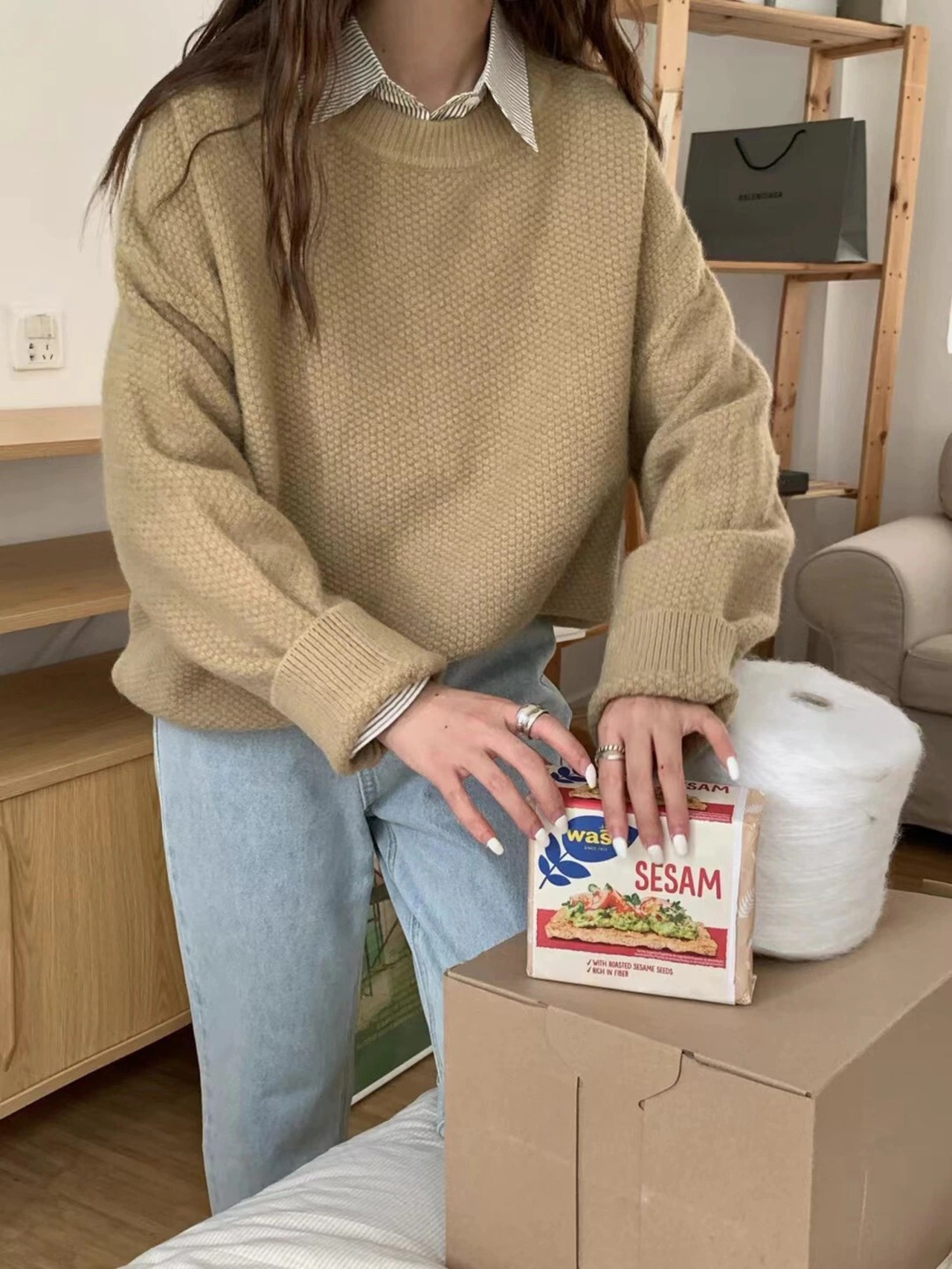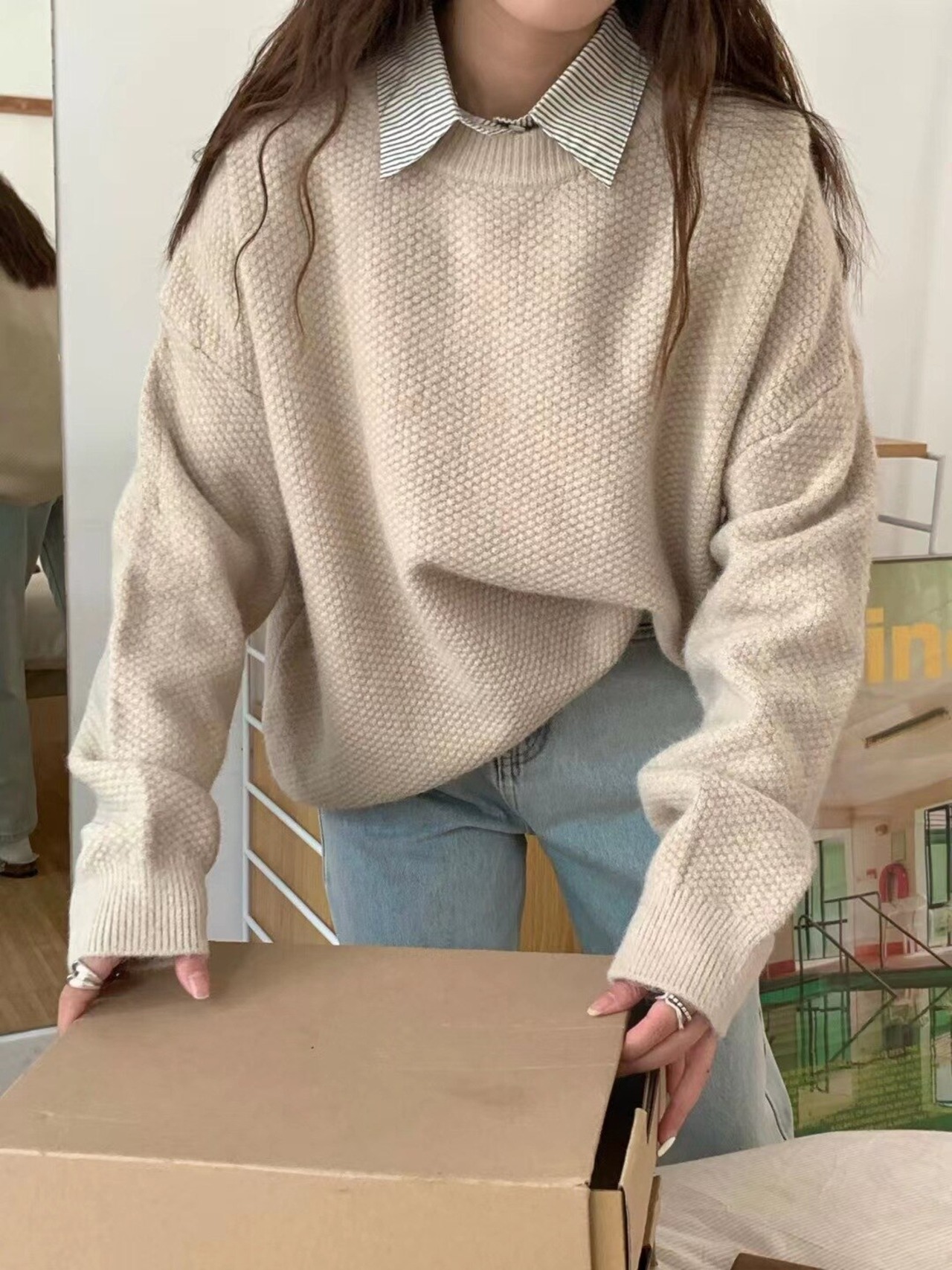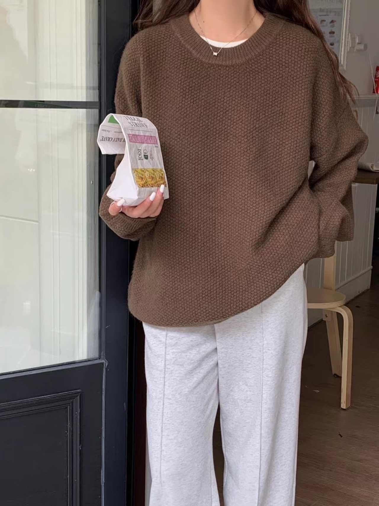 Nomikuma セーター女性秋冬因果無地ニットトップ長袖 O ネックプルオーバーニットジャンパー ロング オータム 秋物 ウィンター 冬物 Oネック ソリッドカラー kor88506418812
