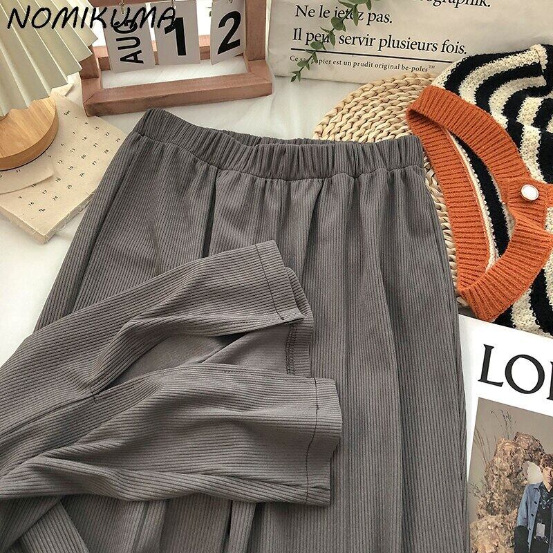 Nomikuma 女性パンツ 2022 夏弾性ウエスト長ズボン因果スタイルフレア Pantalones ロング エラスティック 伸縮 サマー 夏物 kor40349777157