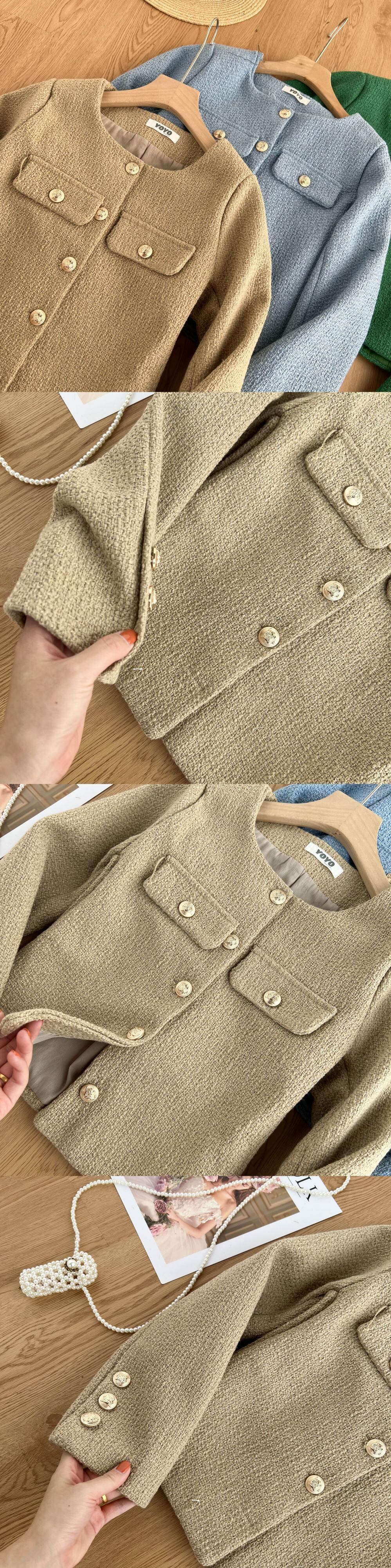 Nomikuma ツイードショートコート女性シングルブレストカーディガン O ネック生き抜くトップス 2022 秋の無地ジャケット オータム 秋物 Oネック ソリッドカラー kor25927225018