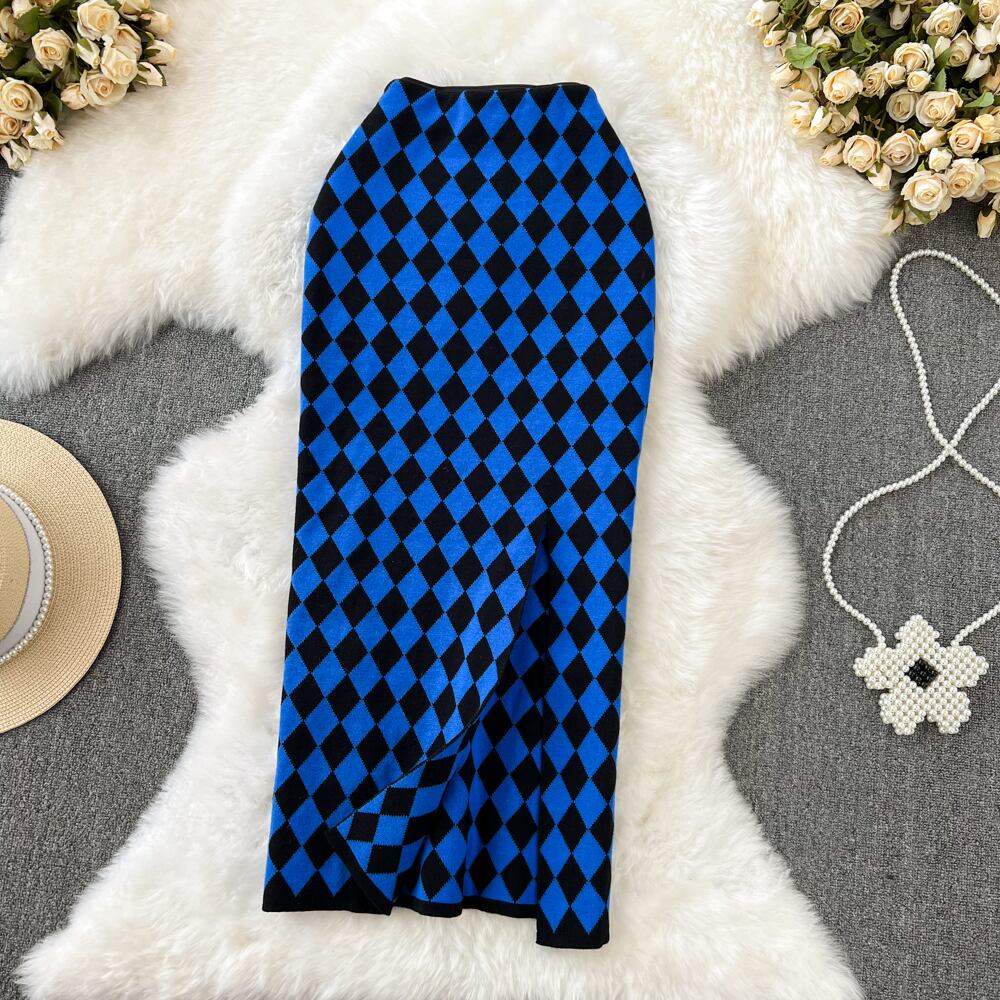 Nomikuma 春秋ボトムスウエストチェック柄スカートレディーススリムスプリットスカート段 Faldas Moda スプリング 春物 オータム 秋物 kor35315726127